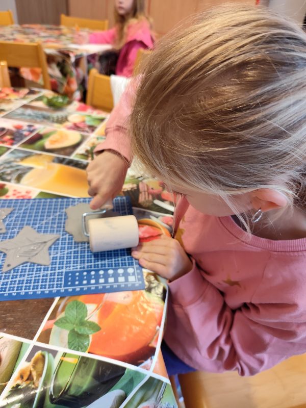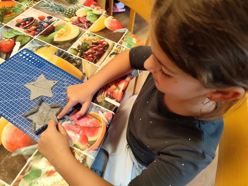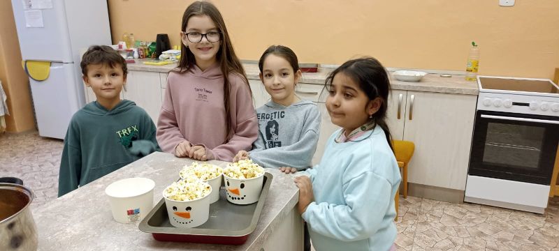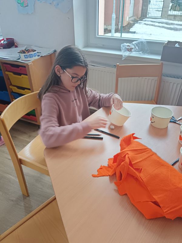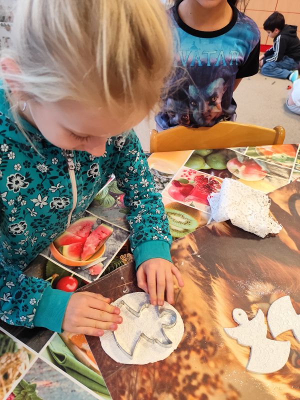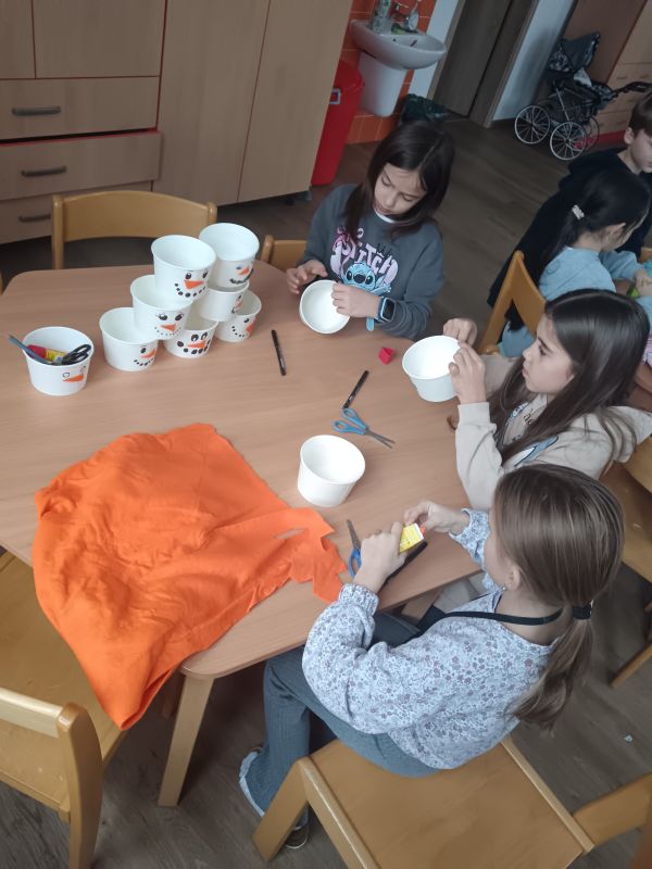 První oddělení vytvořily z tvarovací hmoty ozdoby na stromek a svícny . Druhé oddělení udělaly ve školní kuchyňce popcorn do ozdobených kelímků.