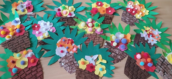 Děti nepodcenily přípravu a vyrobily maminkám kytičky v košíčku. Ty jistě potěšily vlastnoručně vyrobené překvapení na kterém si děti daly záležet.