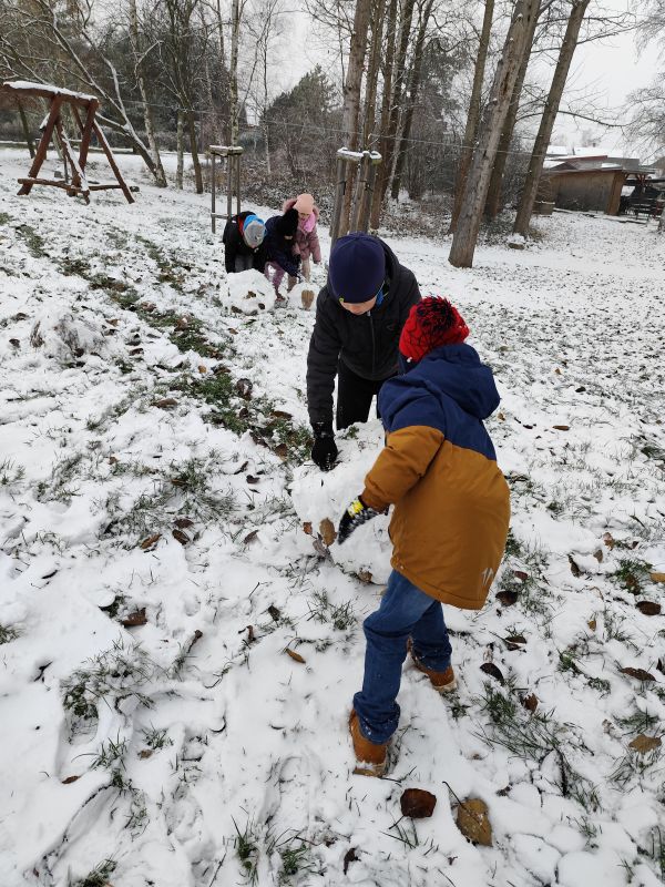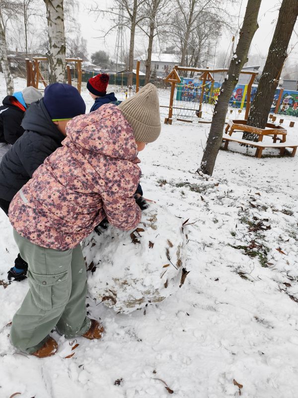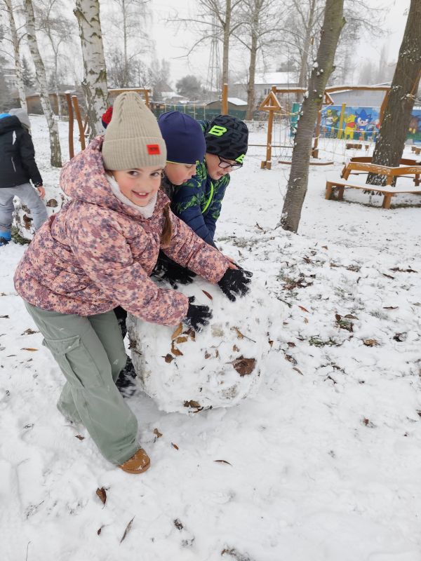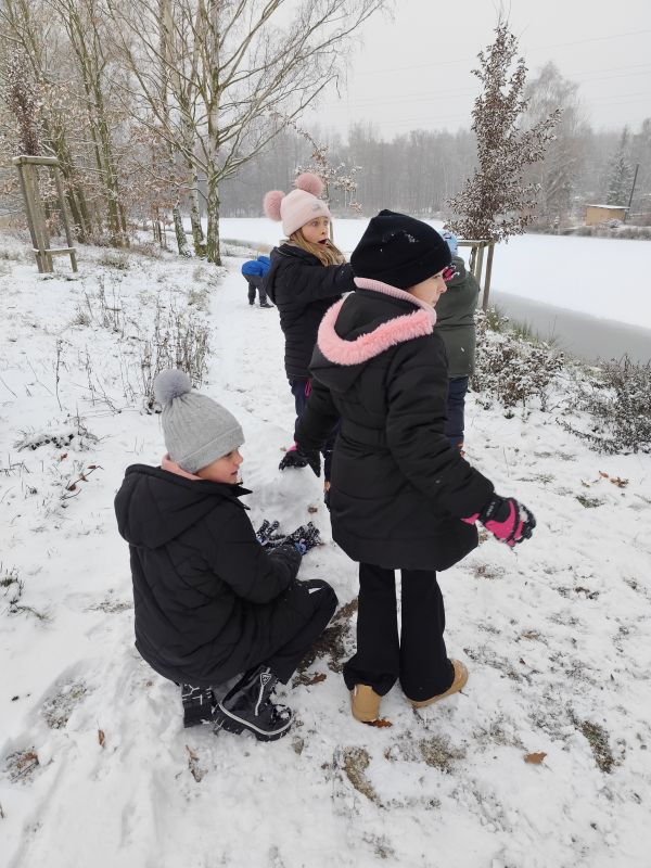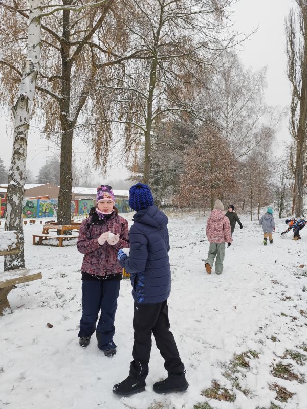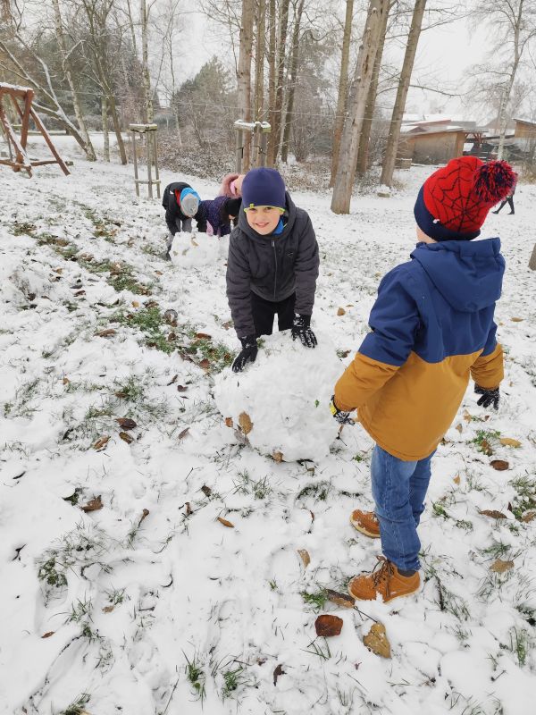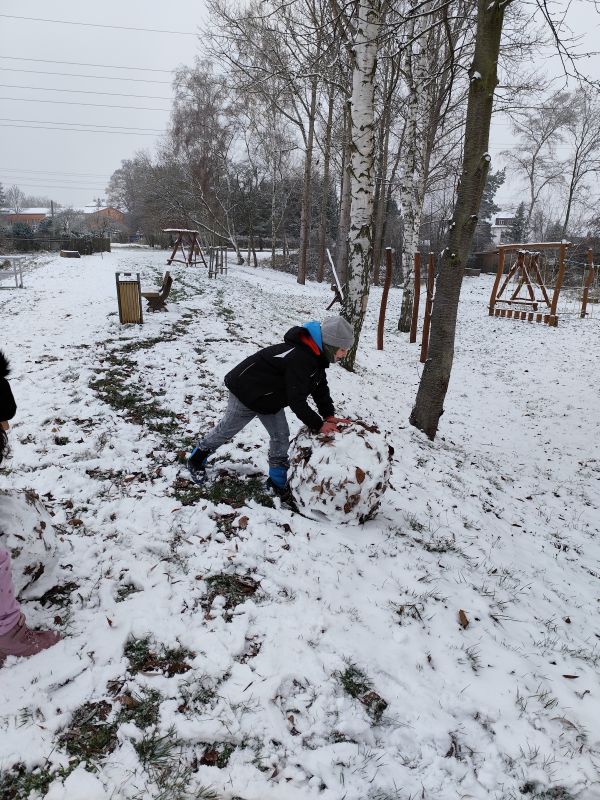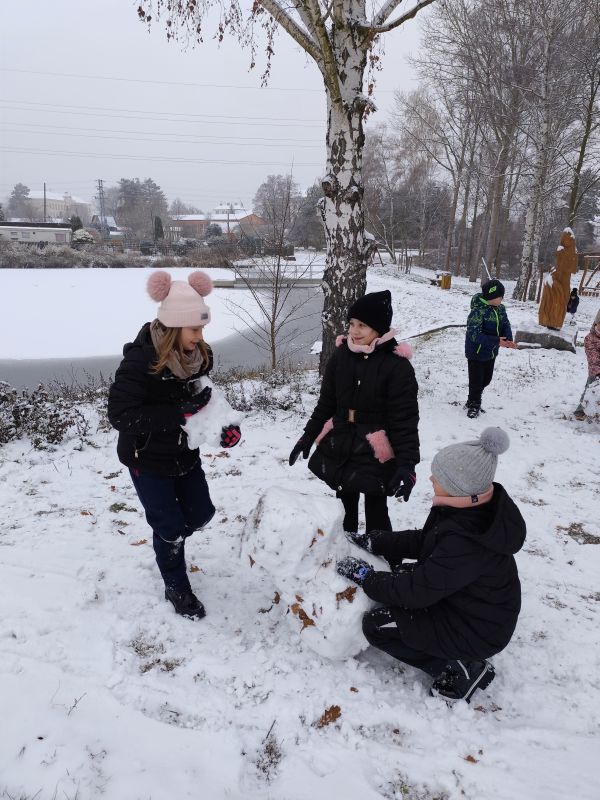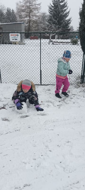 Děti si užily zimní zábavu plnými doušky, i přes mírně mrazivé počasí, které však neodradilo od pohybu a smíchu. Vznikaly veliké koule a objevil se i anděl.