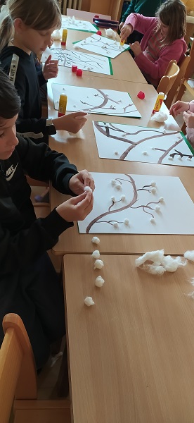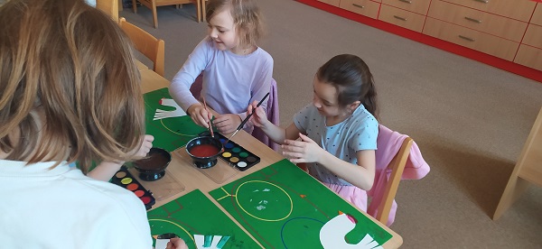 Zasadili jsme semínka rajčatových jablíček, pustili jsme se do jarní výzdoby třídy a jídelny. Hodně času trávíme na školním hřišti a v areálu školy.