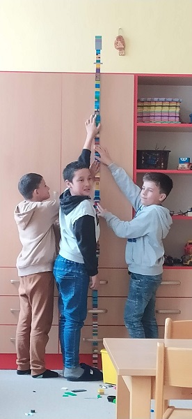 V družině se také staví z kostiček Lega. Tentokrát kluci postavili nejvyšší komín v družině.