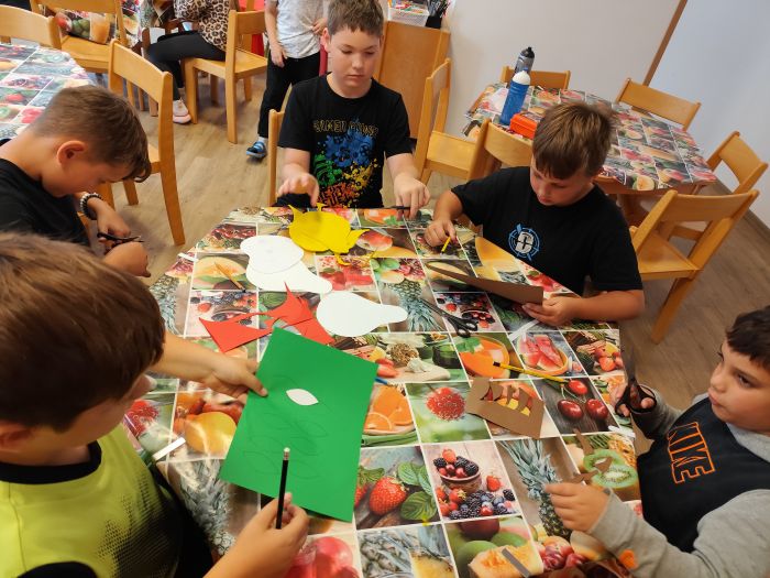 Děti v prázdninovém týdnu nezahálely, pomáhaly paní vychovatelce s výzdobou družiny. Vyrobily strašáky, sovy, melouny a zdobily okna. Za školou zachránily z odpadkového koše ještěrku. Někteří děti překonaly samy sebe a ještěrku si vzaly do ruky nebo jen pohladily.