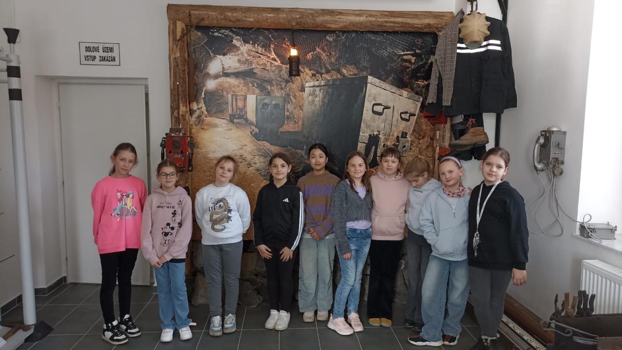 Děti si mohly vyzkoušet hornické helmy, prohlédnout si hornické nářadí, obdivovat horniny a nerosty a pomocí videí a fotografií nahlédnout přímo do dolu. Nakonec jsme si zahráli vědomostní hru.