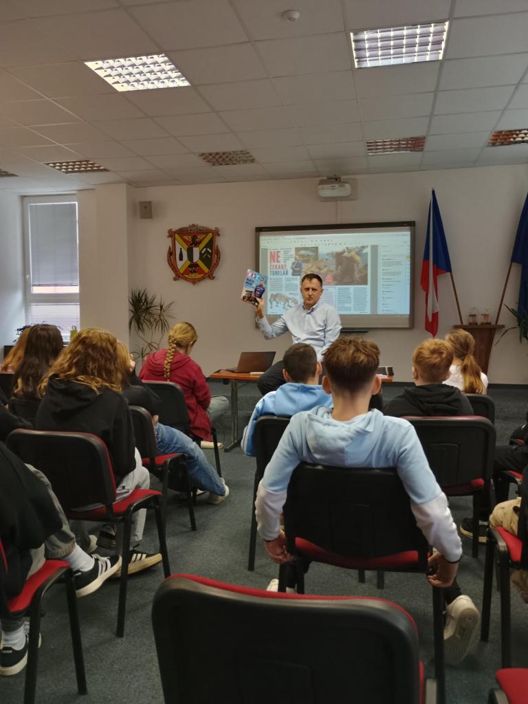Dne 11. 3. 2025 se žáci druhého stupně zúčastnili besedy v Městské knihovně v Novém Sedle se spisovatelem a novinářem Zdeňkem Ležákem. Tématem přednášky je problematika související s profesí novináře a autora knih pro děti a mládež. Zároveň je šéfredaktorem časopisu ABC a ředitelem newsroomu časopisů pro děti (Sluníčko, Nedělníček a ABC) v mediálním domě Czech News Center.