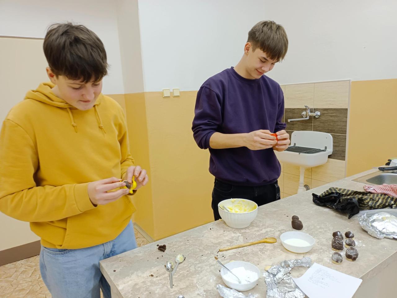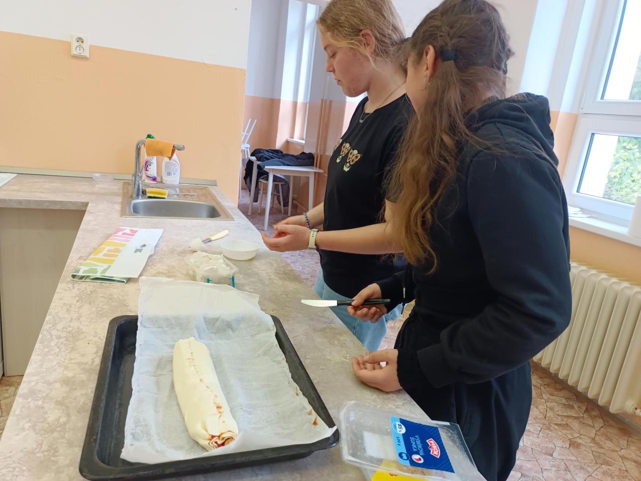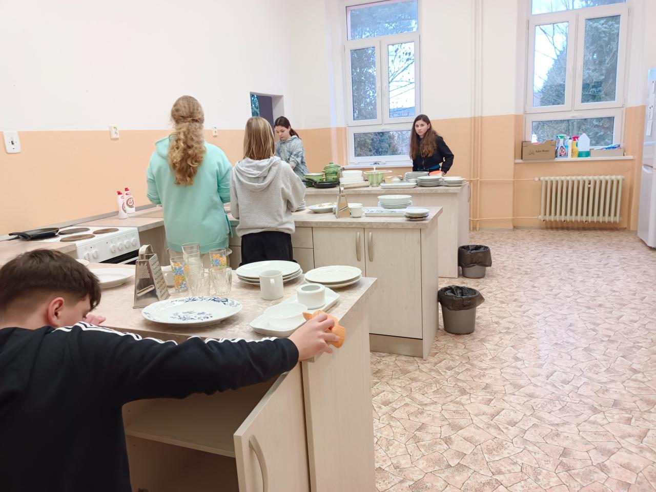 Také jsme zjistili, že tam kde se pracuje, je nutné si i uklidit. Takže jsme museli udělat velký úklid naší kuchyňky. Sestavovali jsme si kuchařskou knihu i se svým oblíbeným receptem.