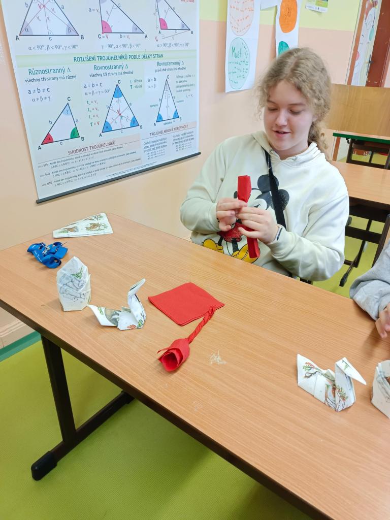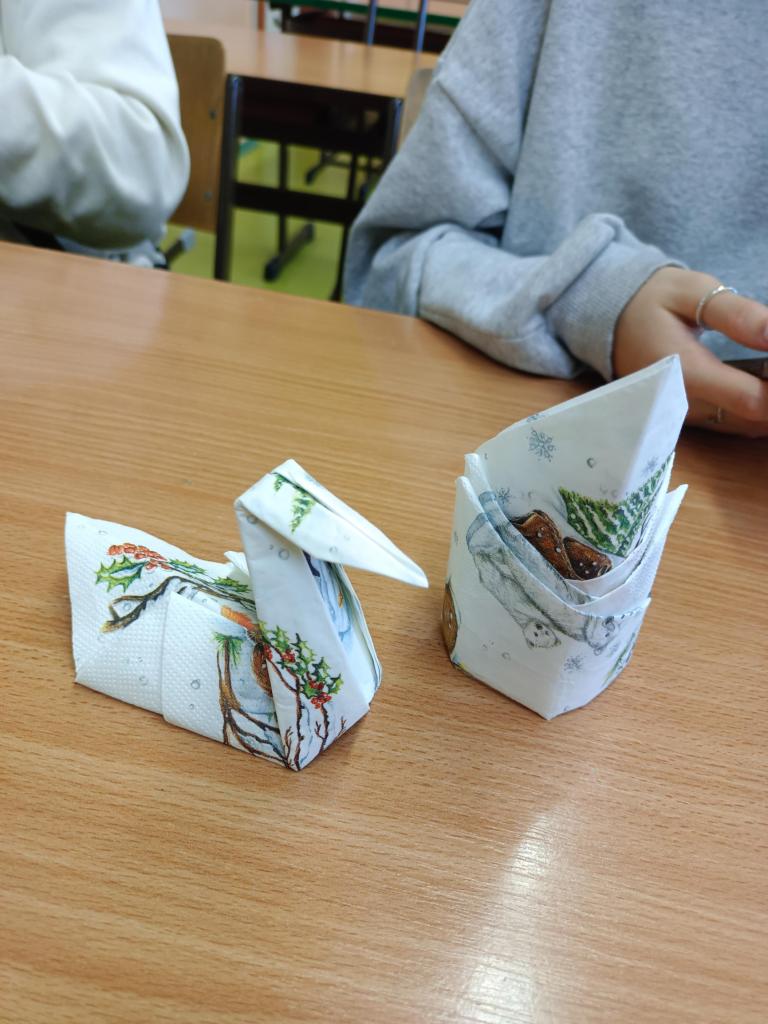 Před Vánocemi jsme si zkusili připravit velmi oblíbené nepečené cukroví – vosí hnízda. Vyzkoušeli jsme si různé možnosti dekorací ubrousků na slavnostní prostřední stolu.