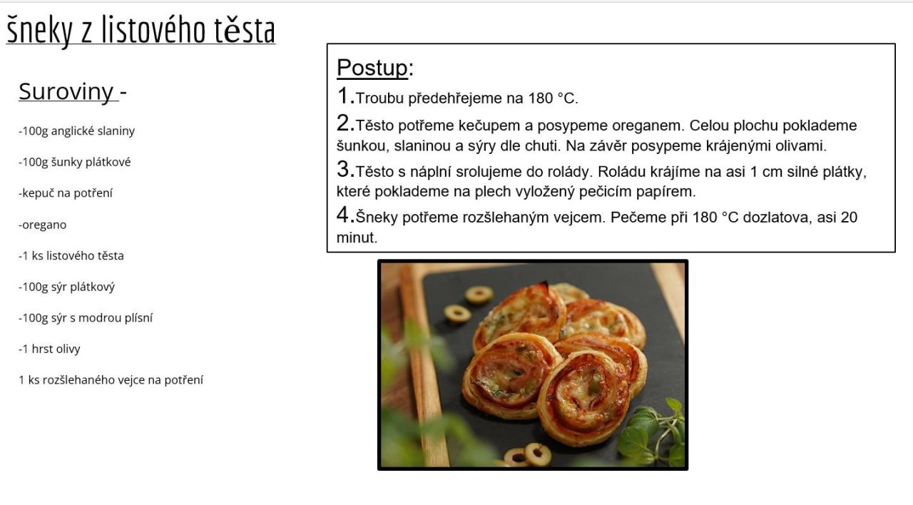 A v neposlední řadě jsme pekli šneky. Ne ty pravé šneky po francouzsku, ale šneky z listového a kynutého těsta. Jak na slano tak i na sladko.