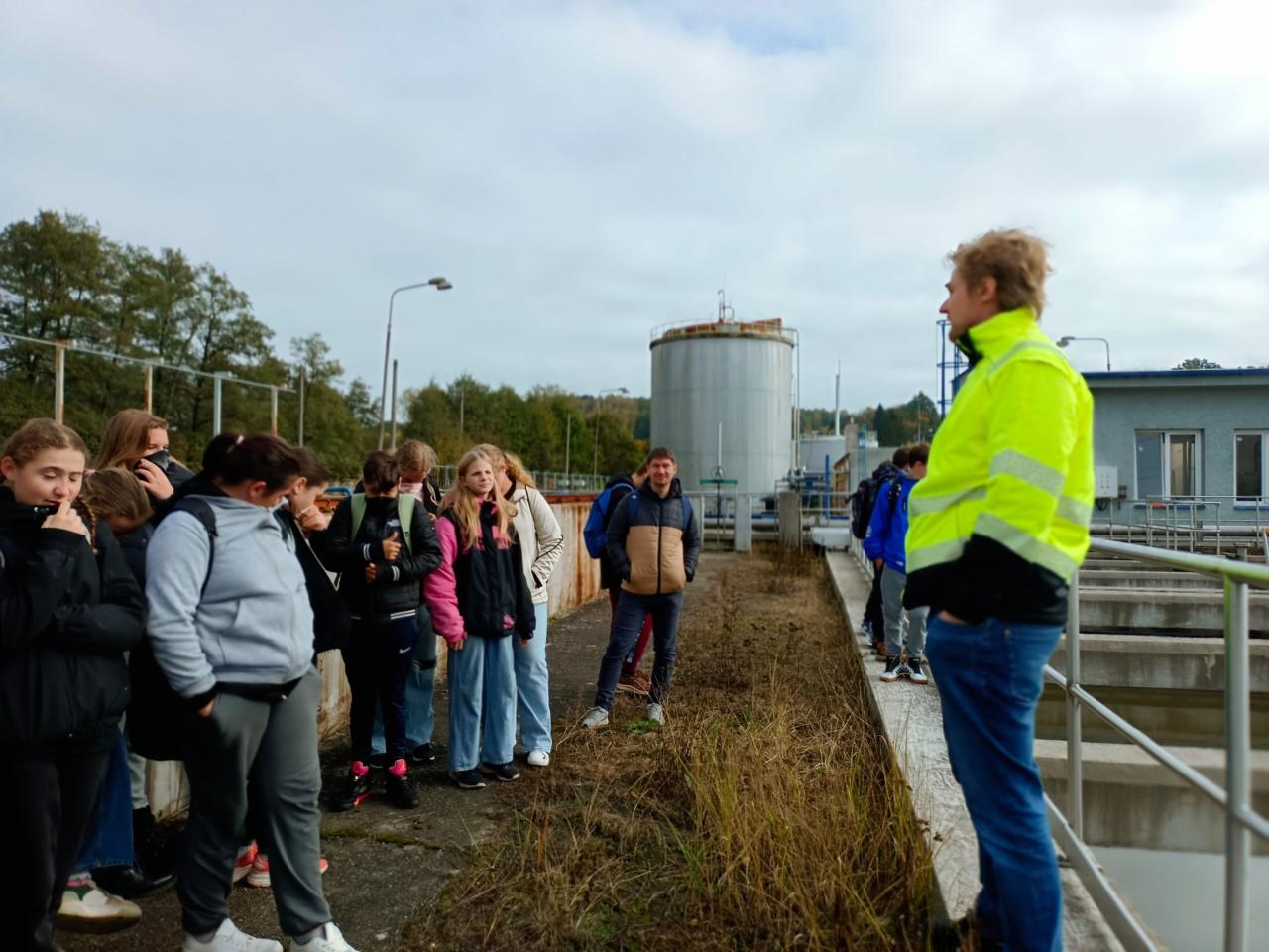 Žáci 7. a 8. ročníku se ve čtvrtek 17. 10. 2024 zúčastnili exkurze na úpravnu vody Horka a ještě stihli navštívit čističku odpadních vod v Sokolově. V úvodu nám ve velíně vysvětlili princip procesu úpravy vody, která do nádrže přitéká z Libeckého potoka, následně jsme pak v reálu viděli jednu z technologií – čištění pískového filtru. Po vyšplhání na hráz jsme se skulili zpět k autobusu a přejeli do Sokolova. V čistírně nás nejprve praštil přes nos nepříjemný odér, který se linul po okolí. Viděli jsme například, kolik pevných odpadů, jako jsou například vlhčené ubrousky, končí v záchodech místo v popelnici a seznámili jsme se s různými čistícími procesy. Nikdo si nejspíš nebude chtít návštěvu ČOV zopakovat, ale třeba to pro někoho bude inspirace k budoucímu povolání. V závěru jsme si o to víc vychutnali vůni jeleního guláše v naší školní jídelně.