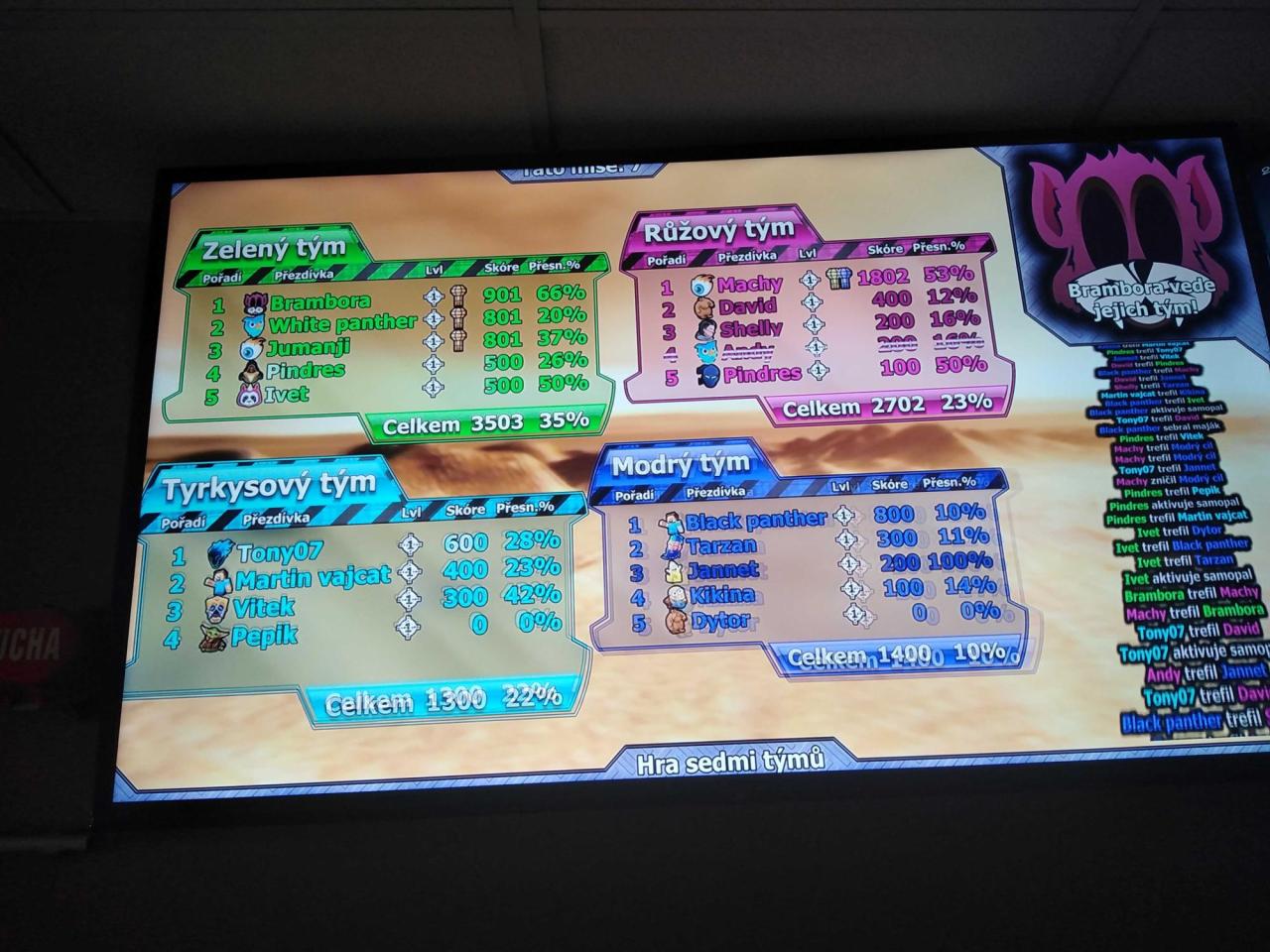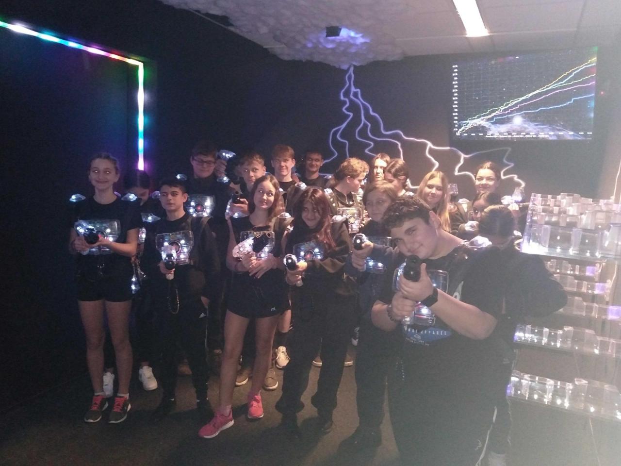 Navštívili totiž největší arénu v západních Čechách, kde si zahráli Laser game. Každý hráč byl vybaven elektronickou vestou a zbraní s laserem. Nejdříve hráli všichni proti všem, ve druhé hře byli rozděleni do 4 skupin, kde mohli dokázat soudržnost a týmovou spolupráci. Energii doplnili kde jinde, než v "mekáči".