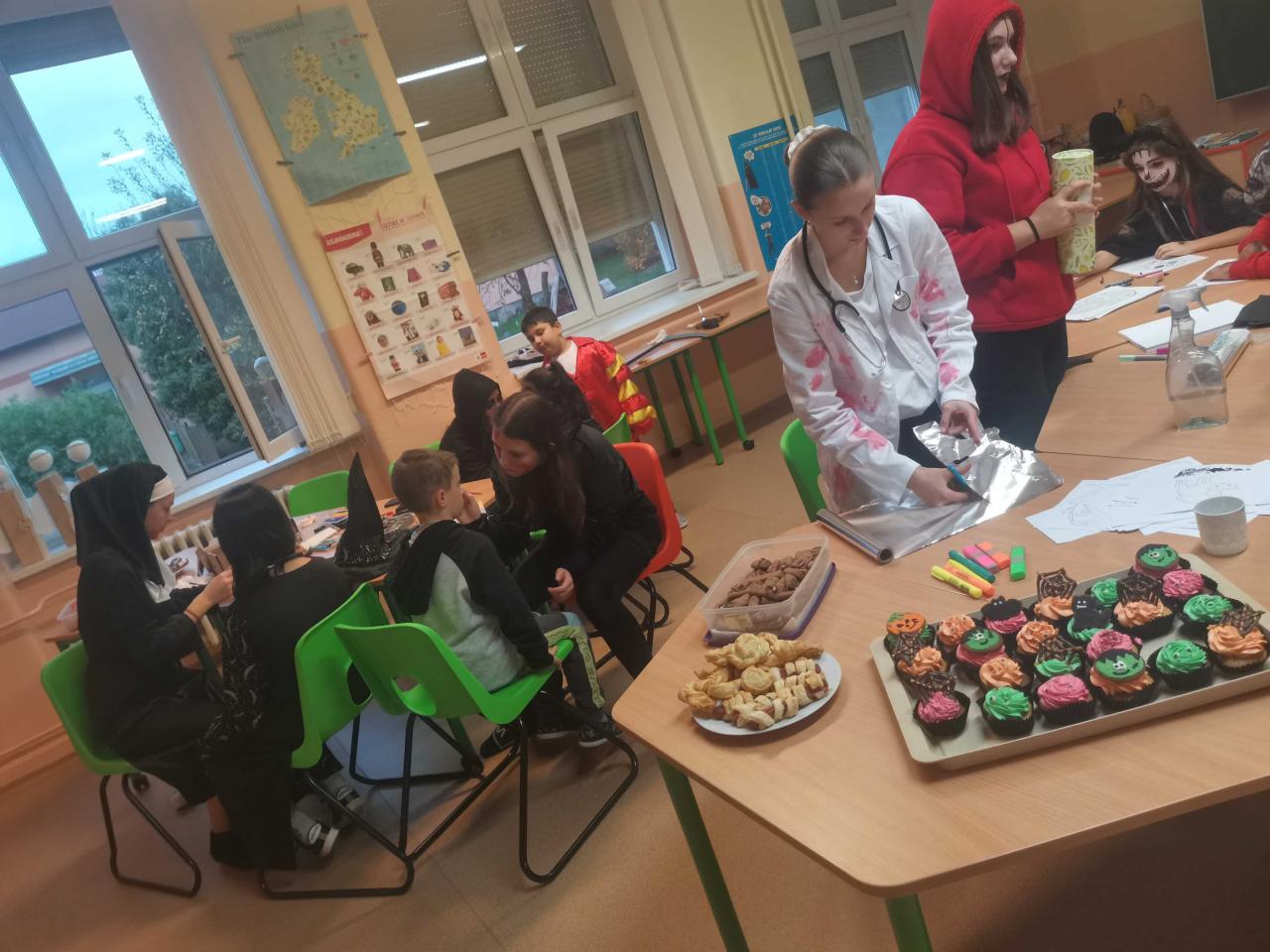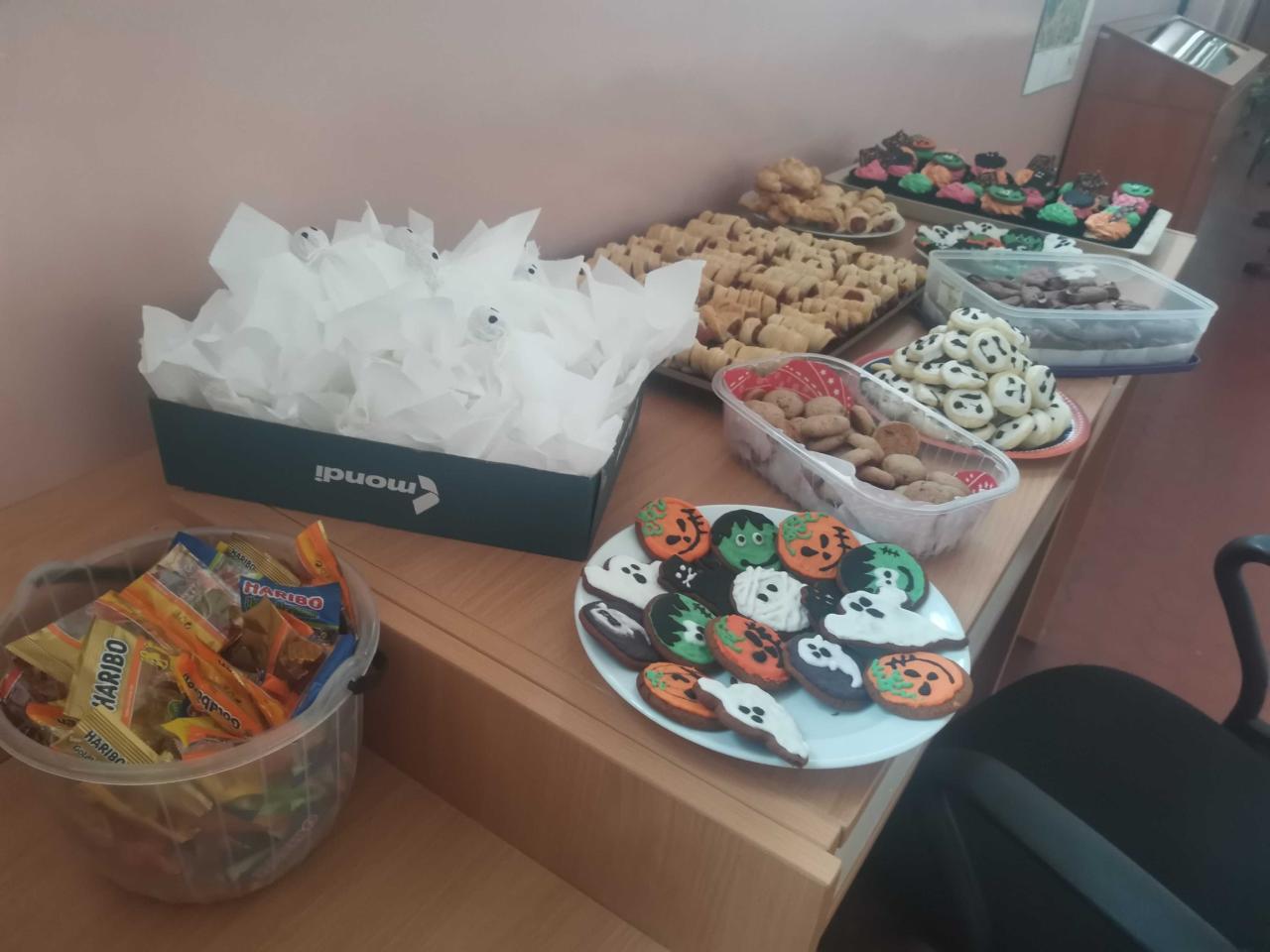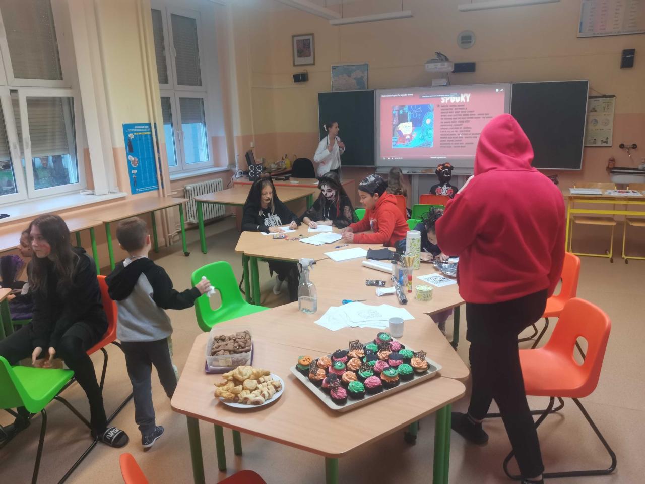 Deváťáci pod vedením své třídní učitelky připravovali nejen halloweenskou výzdobu, ale i vlastní občerstvení na téma Halloween. O další dobroty se zasloužila vedoucí školní jídelny, děkujeme za ochotu i spolupráci.