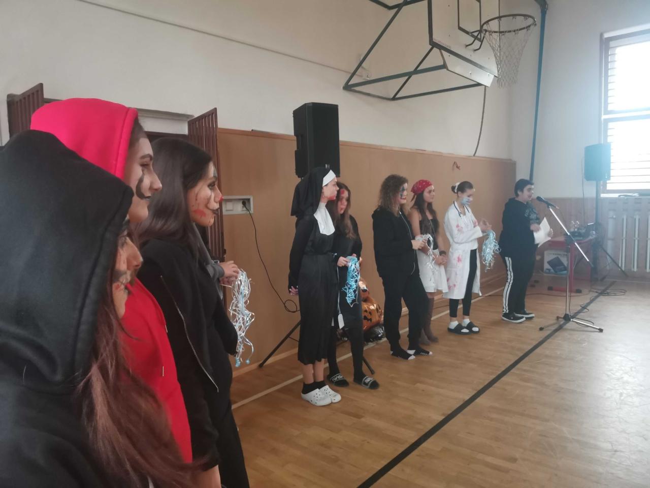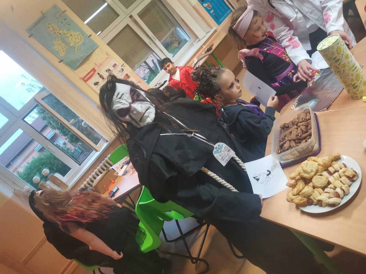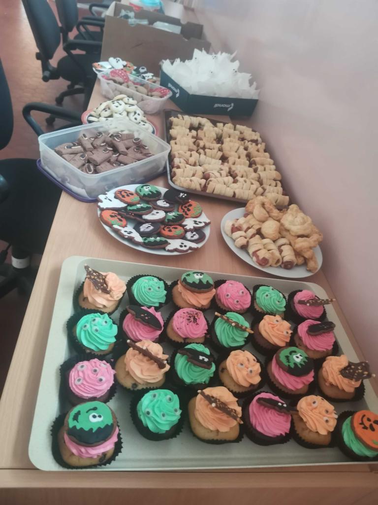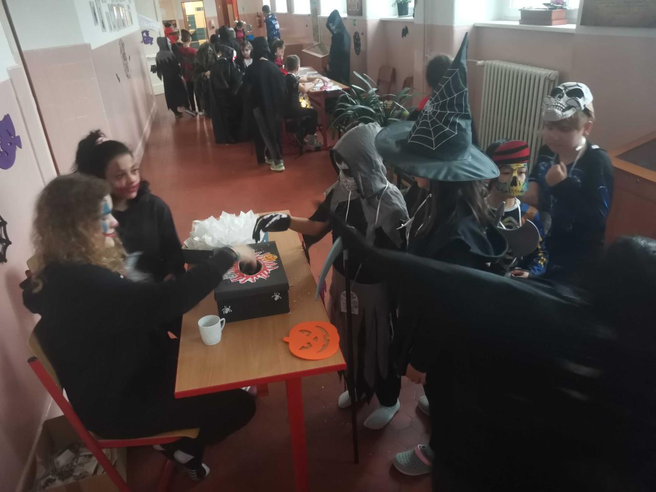 Deváťáci pod vedením své třídní učitelky připravovali nejen halloweenskou výzdobu, ale i vlastní občerstvení na téma Halloween. O další dobroty se zasloužila vedoucí školní jídelny, děkujeme za ochotu i spolupráci.
