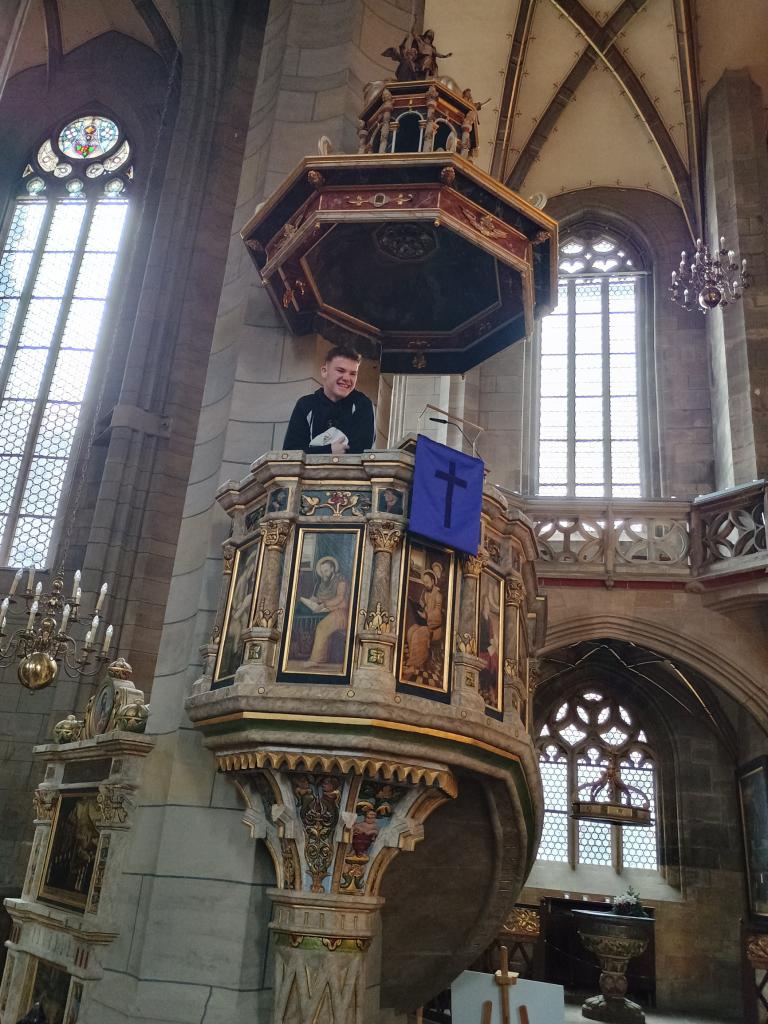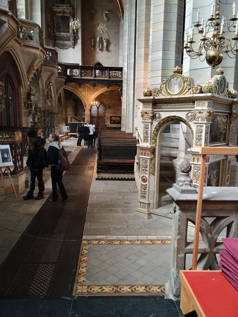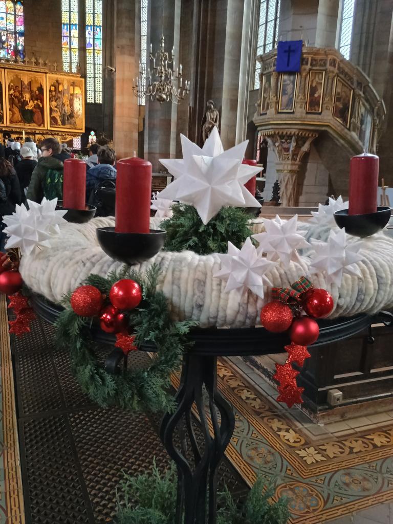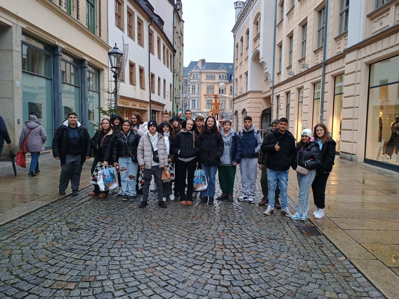 Jako již tradičně jsme se ve středu 4.12. vydali s devítkou nasát vánoční atmosféru do německého Zwickau. Tentokrát jsme ale vyjeli dřív, protože nás čekala prohlídka jedné z nejhezčích katedrál v Sasku St. Marien. U hlavního vchodu do katedrály nás přivítala paní Behnken, která v katedrále provází. Povídala nám nejen o historii, ale měla pro žáky připravenou i zajímavou aktivitu, při které se dozvěděli spousty zajímavých informací. Po odchodu z katedrály jsme se vydali na vánoční trh, který je ve Zwickau rozmístěný v historickém centru. Nasáli jsme vůni perníčků, „bratwurstů“ od lokálních řezníků, langošů, uzeného masa a dětského punče. Ze stánků se na nás smáli keramičtí sněhuláci, puntíkaté muchomůrky a z dálky na nás svítily svícny vyřezané z překližky……Domů jsme jeli nejen s taškami plných dárečků, ale také s pocitem klidu a pohody.
