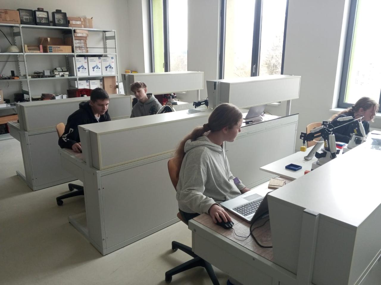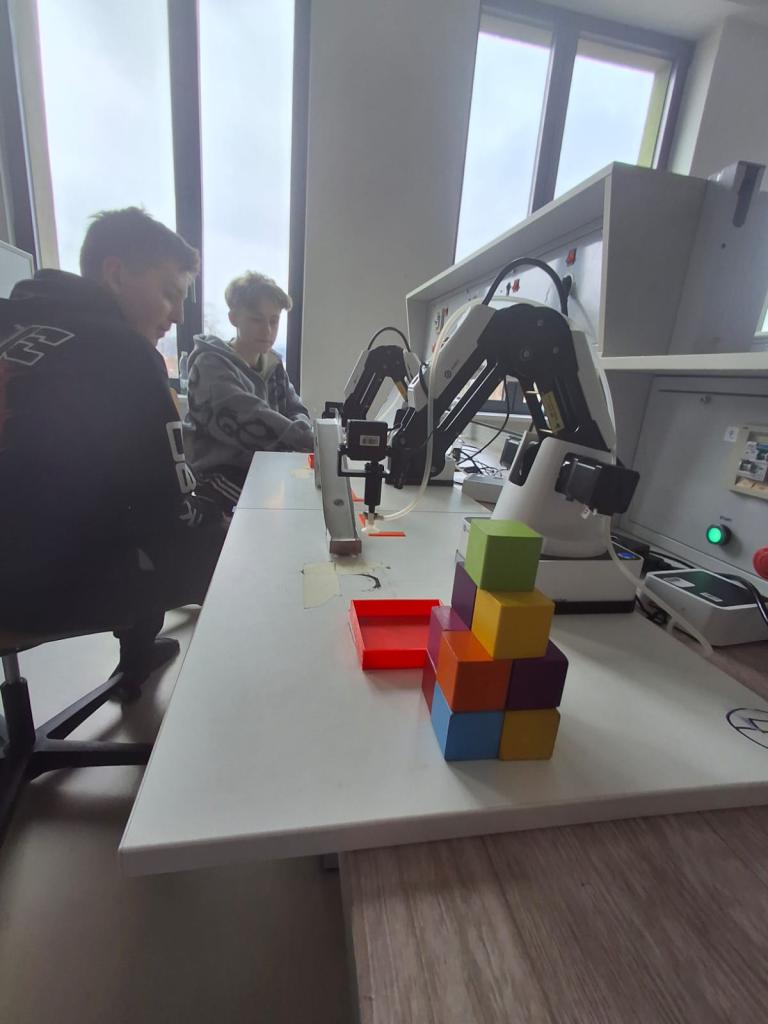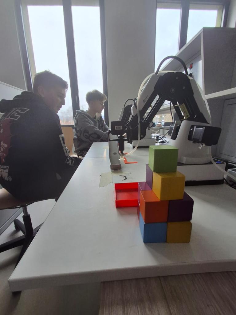 Ve středu 26. 2. se naši „inženýři“ dostali na stanoviště, kde si vyzkoušeli programování opravdových robotů. Tyhle „mašinky“ je opravdu poslouchaly. Přenášely kostičky jedna báseň.