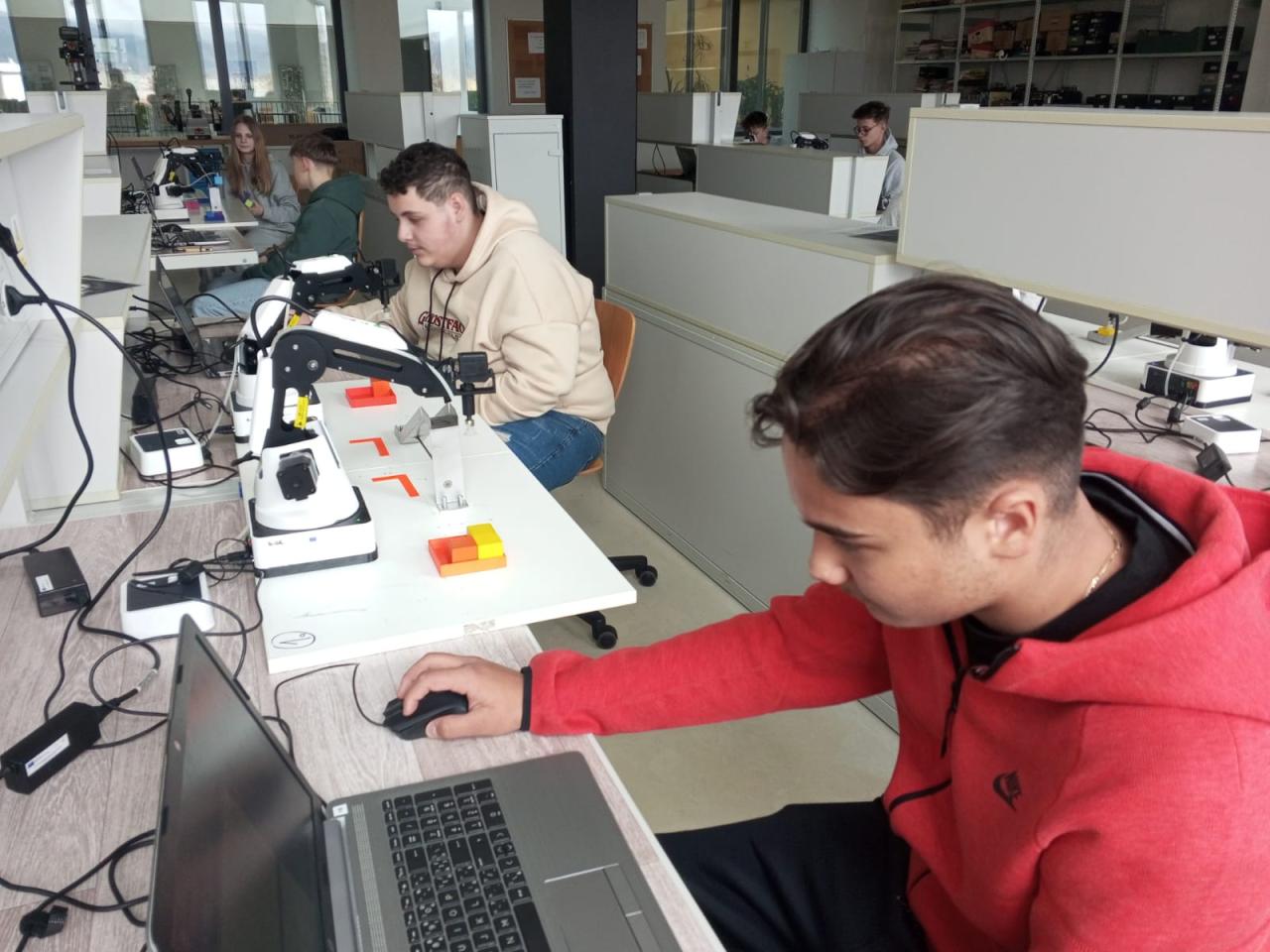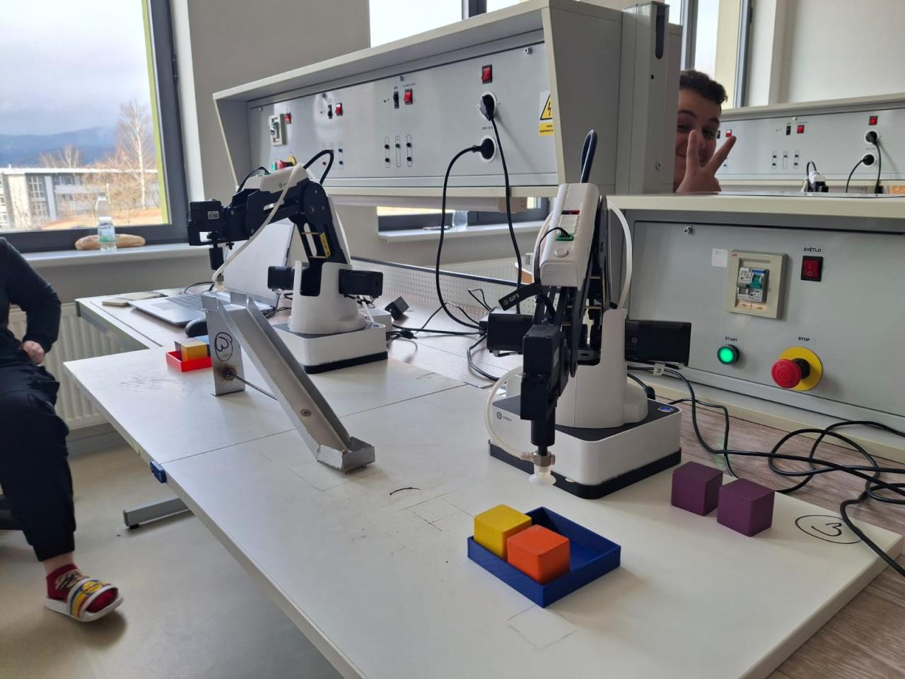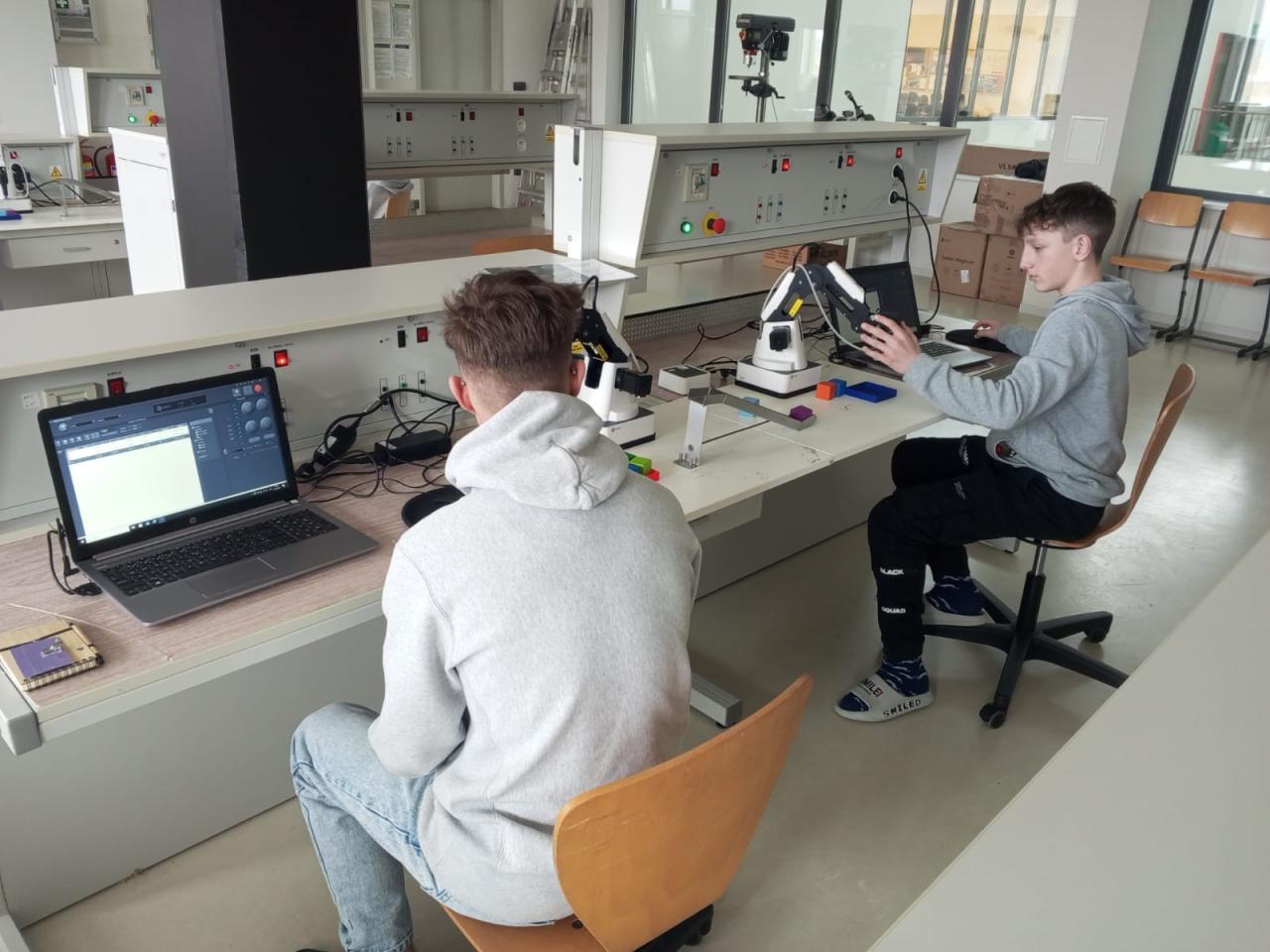 Ve středu 26. 2. se naši „inženýři“ dostali na stanoviště, kde si vyzkoušeli programování opravdových robotů. Tyhle „mašinky“ je opravdu poslouchaly. Přenášely kostičky jedna báseň.