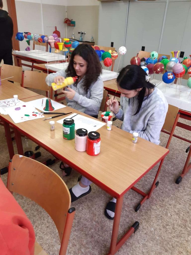 V hodinách výtvarné výchovy a pracovních činností zdobily polystyrenové vánoční ozdoby různými motivy dle vlastní fantazie. Veškerý materiál poskytl Městský úřad Nové Sedlo, aby se ozdobami do vánoční nálady mohly obléknout stromy před MÚ. Jedna ozdobička je hezčí než druhá, sami se se můžete přesvědčit, až půjdete kolem.