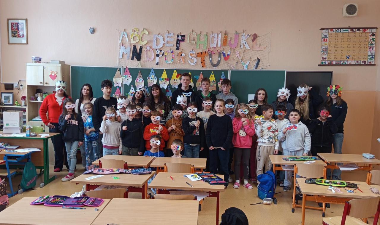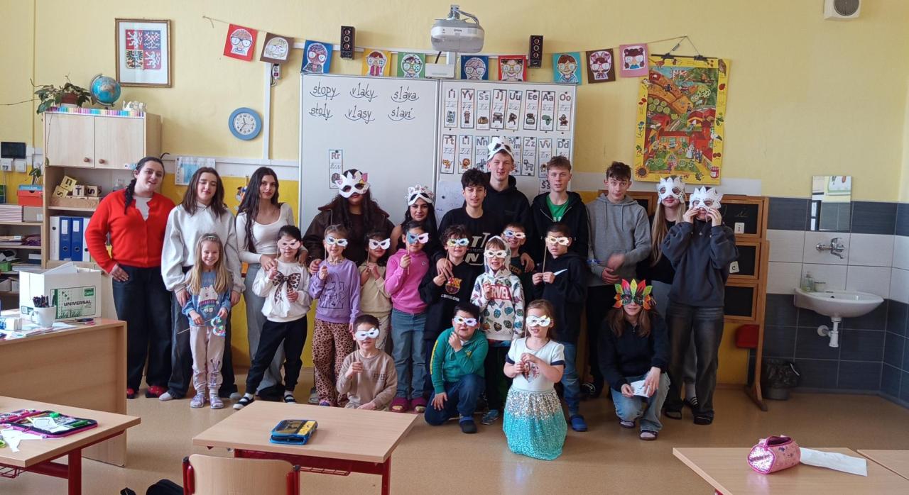 Celoškolním projektem jsme zakončili masopustní období a odstartovali čtyřicetidenní půst před Velikonocemi. Pro projekt Masopust jsme zvolili efektivní metodu vrstevnického vzdělávání, kdy starší žáci se stali průvodci Masopustem pro ty menší. Mladší žáci na prvním stupni se formou her a praktických úkolů seznámili s významem Masopustu, typickými maskami a symboly. Druhostupňáci se zapojili do plánování a vedení aktivit, čímž si rozvinuli své dovednosti v komunikaci a odpovědnosti. V rámci projektu jsme se zaměřili na kreativitu, spolupráci mezi ročníky, podporu pozitivního klimatu školy a v neposlední řadě i na pohyb a hudbu, což obohatilo zážitek všech zúčastněných. Poděkování patří celému týmu školy za skvělou spolupráci a maximální nasazení.