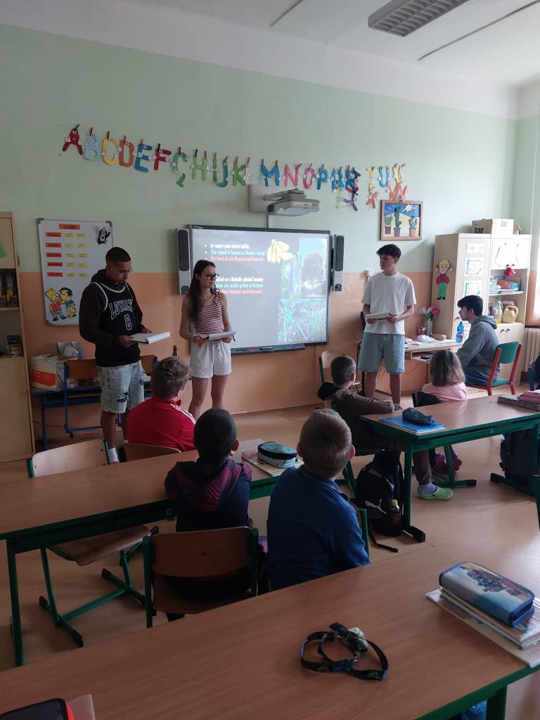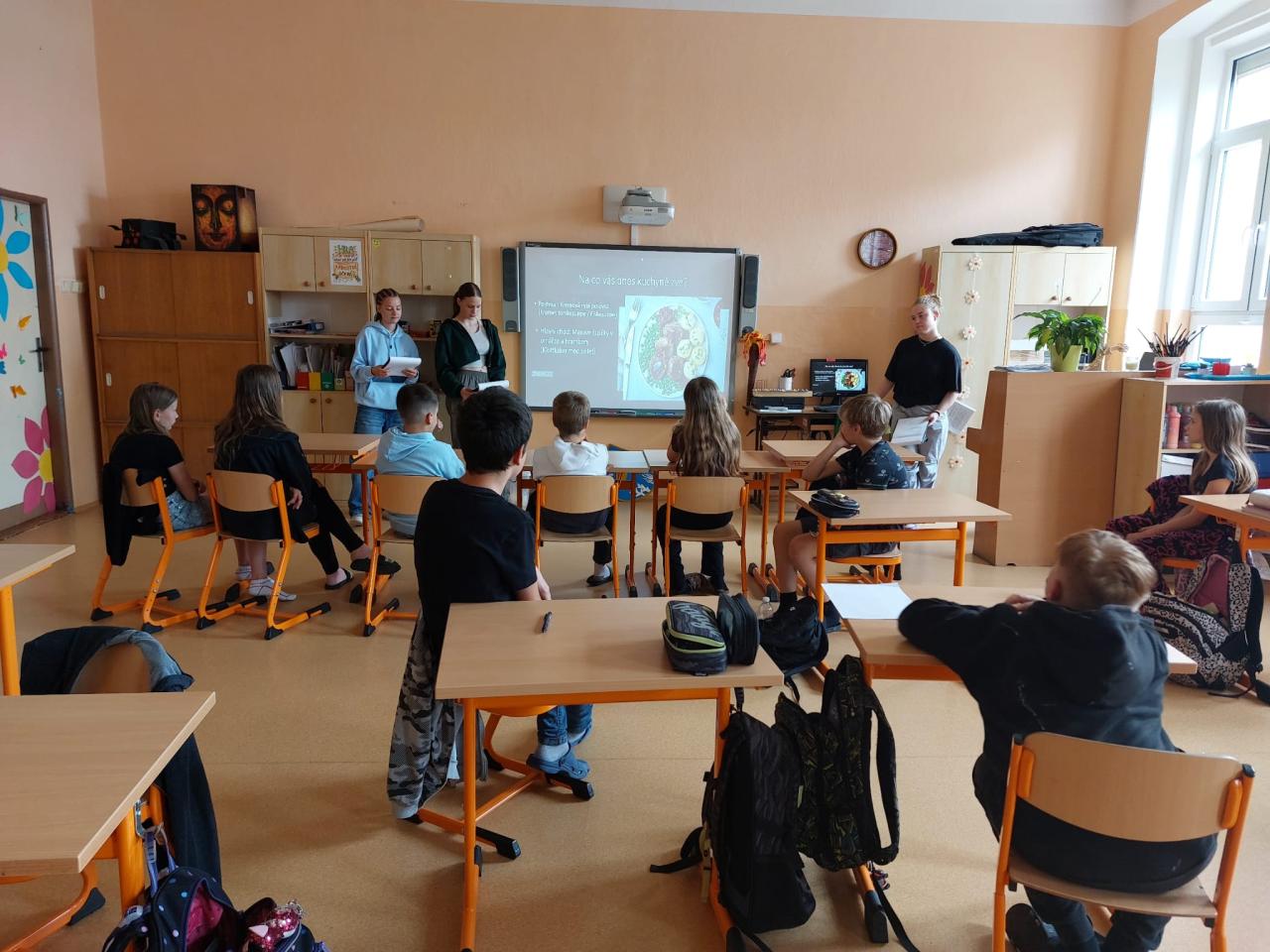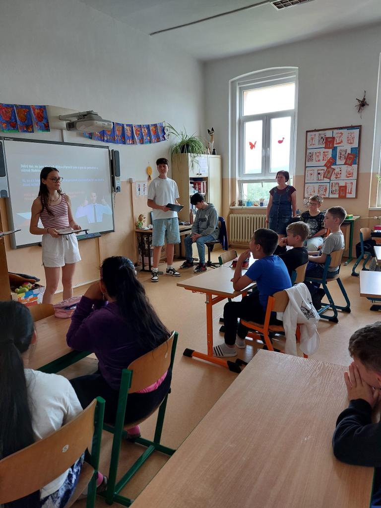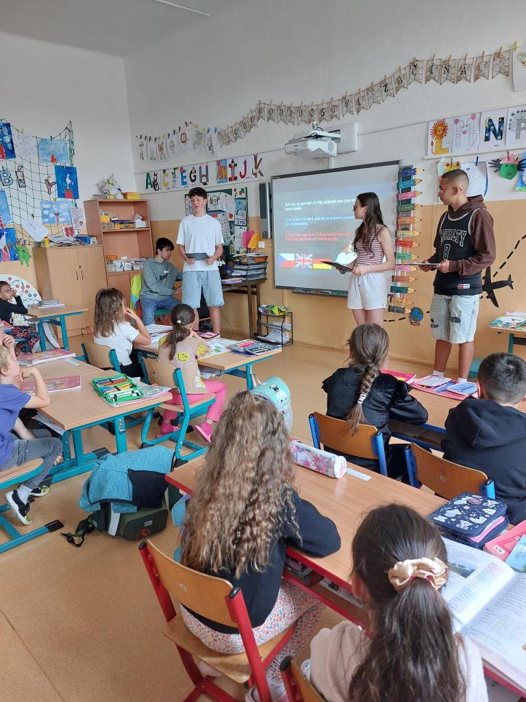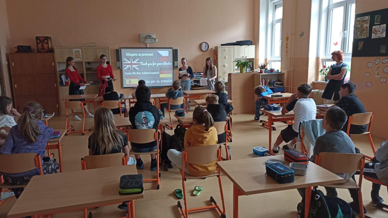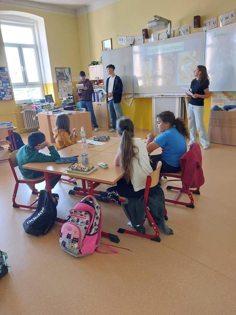 Velké poděkování patří především žákům 9. ročníku a vyučujícím, které je po celou dobu vedly, dále pak i všem ve školní kuchyni, které se podíleli na přípravě mezinárodních jídel, a v neposlední řadě děkujeme i paním asistentkám, které doprovázely žáky po dobu jejich prezentace :-) Poděkování patří i posluchačům, žákům prvního stupně, kteří se aktivně zapojovali do připravených úkolů a vzorně naslouchali novým informacím.