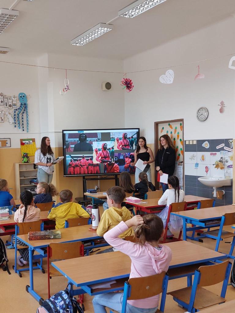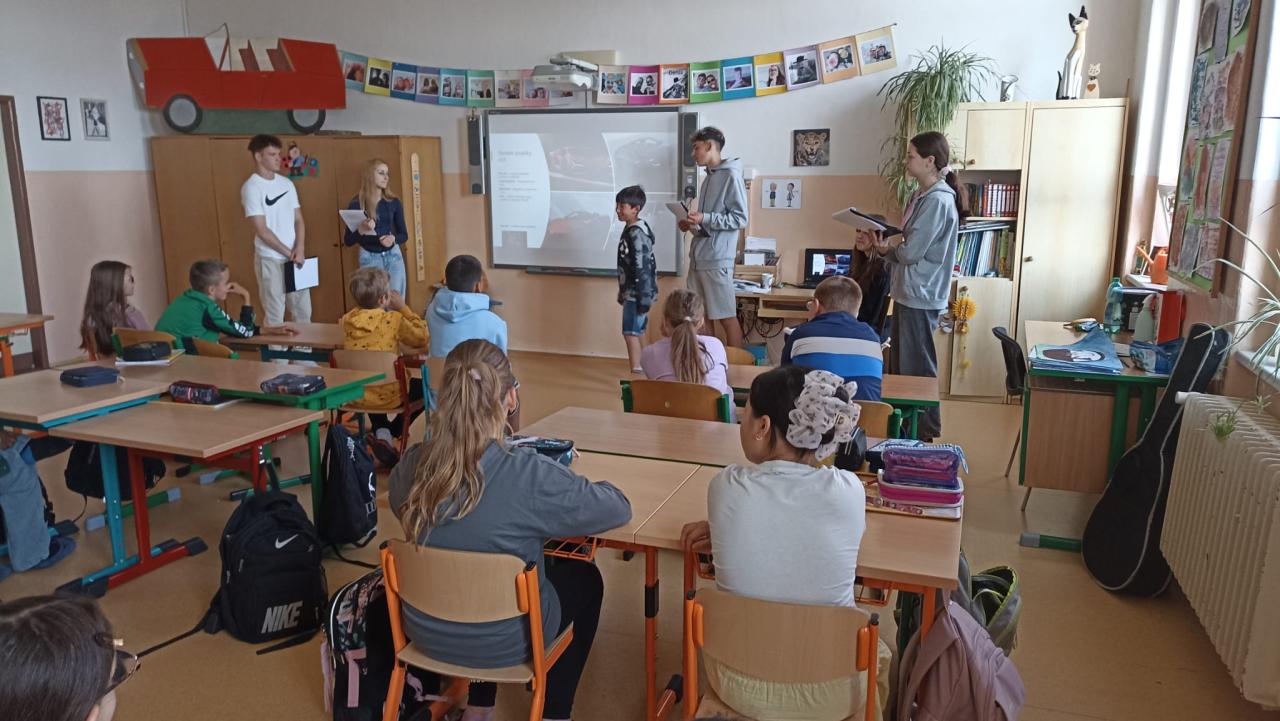 Poděkování patří i posluchačům, žákům prvního stupně, kteří se aktivně zapojovali do připravených úkolů a vzorně naslouchali novým informacím.