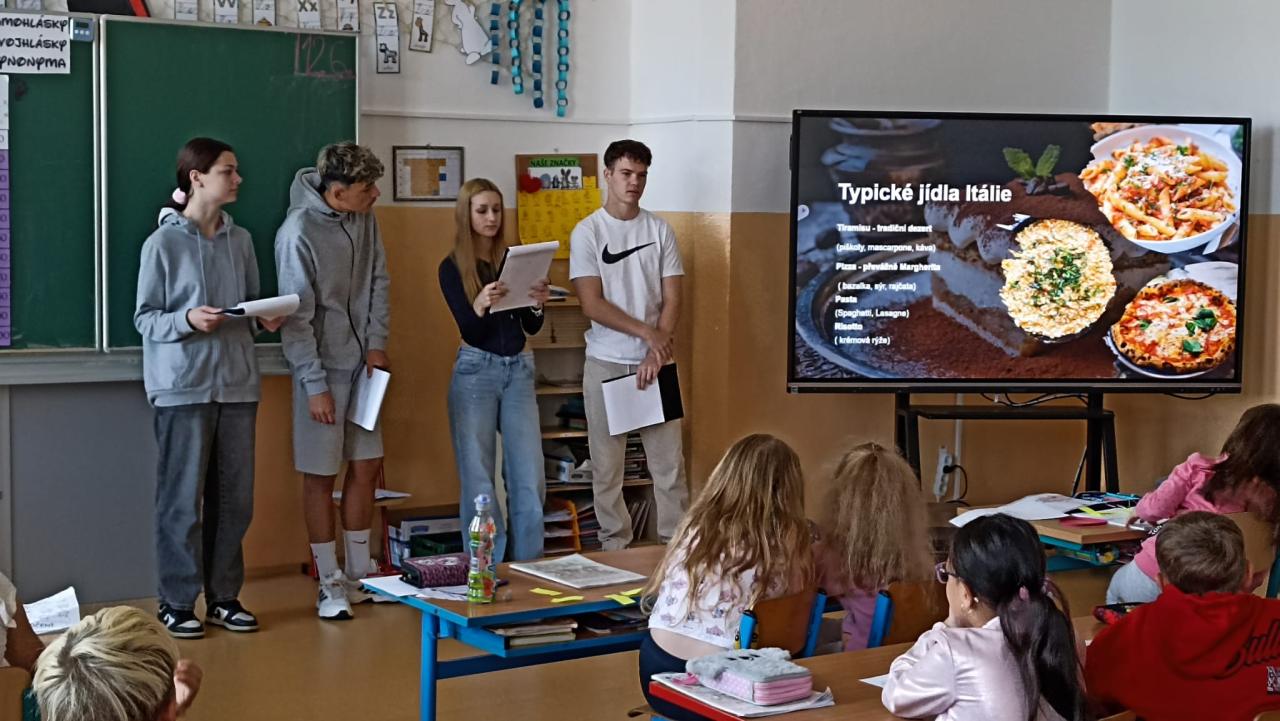 Cílem projektu bylo představit vybrané země jako Jižní Koreu, Slovensko, Švédsko, Itálii a Rakousko prostřednictvím prezentací zaměřených na gastronomii. Žáci 9. ročníku byli rozděleni do pěti skupin a každý den se zaměřili na jinou zemi, přičemž jejich prezentace probíhaly v cizích jazycích a byly doplněny ochutnávkami tradičních jídel. V tomto týdnu se uskuteční anketa v Edupagi o nejzajímavější prezentaci a nejchutnější jídlo, na jejíž výsledky se těšíme.