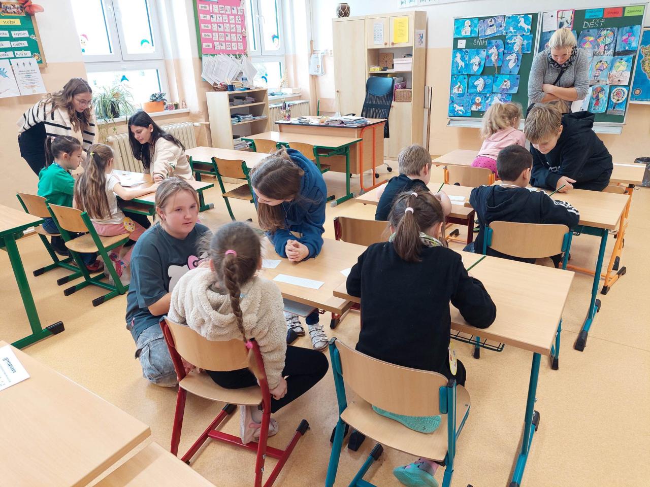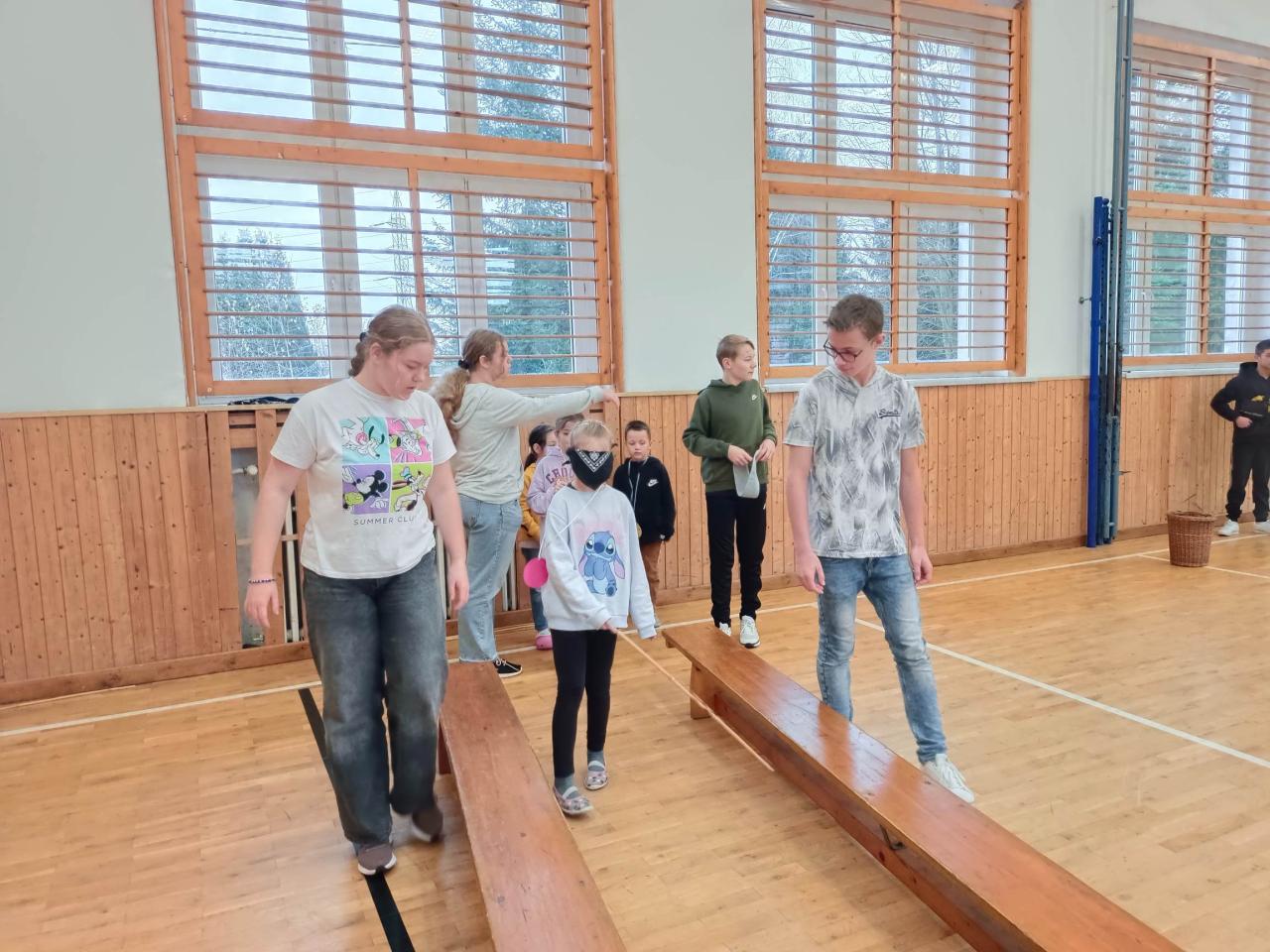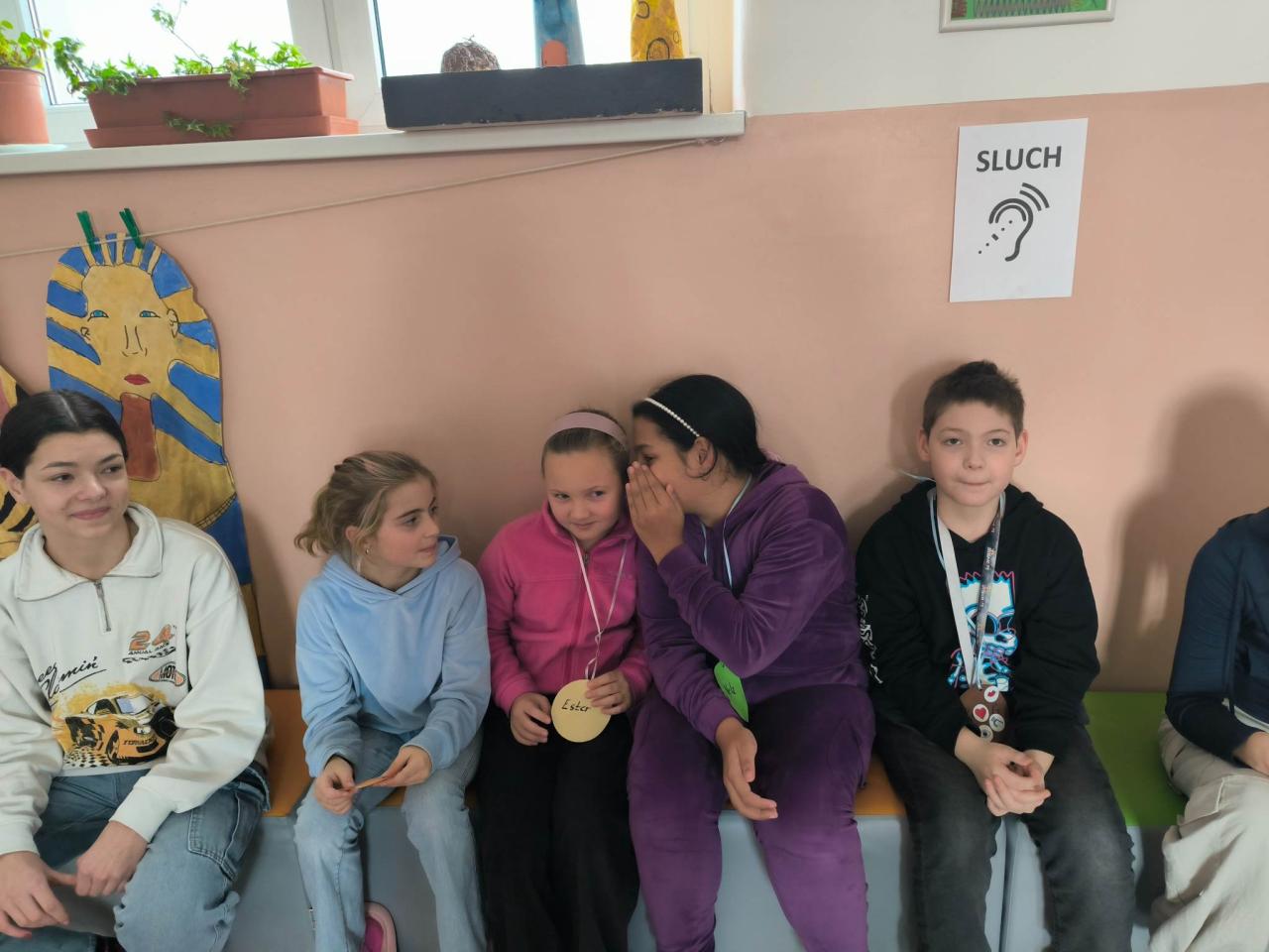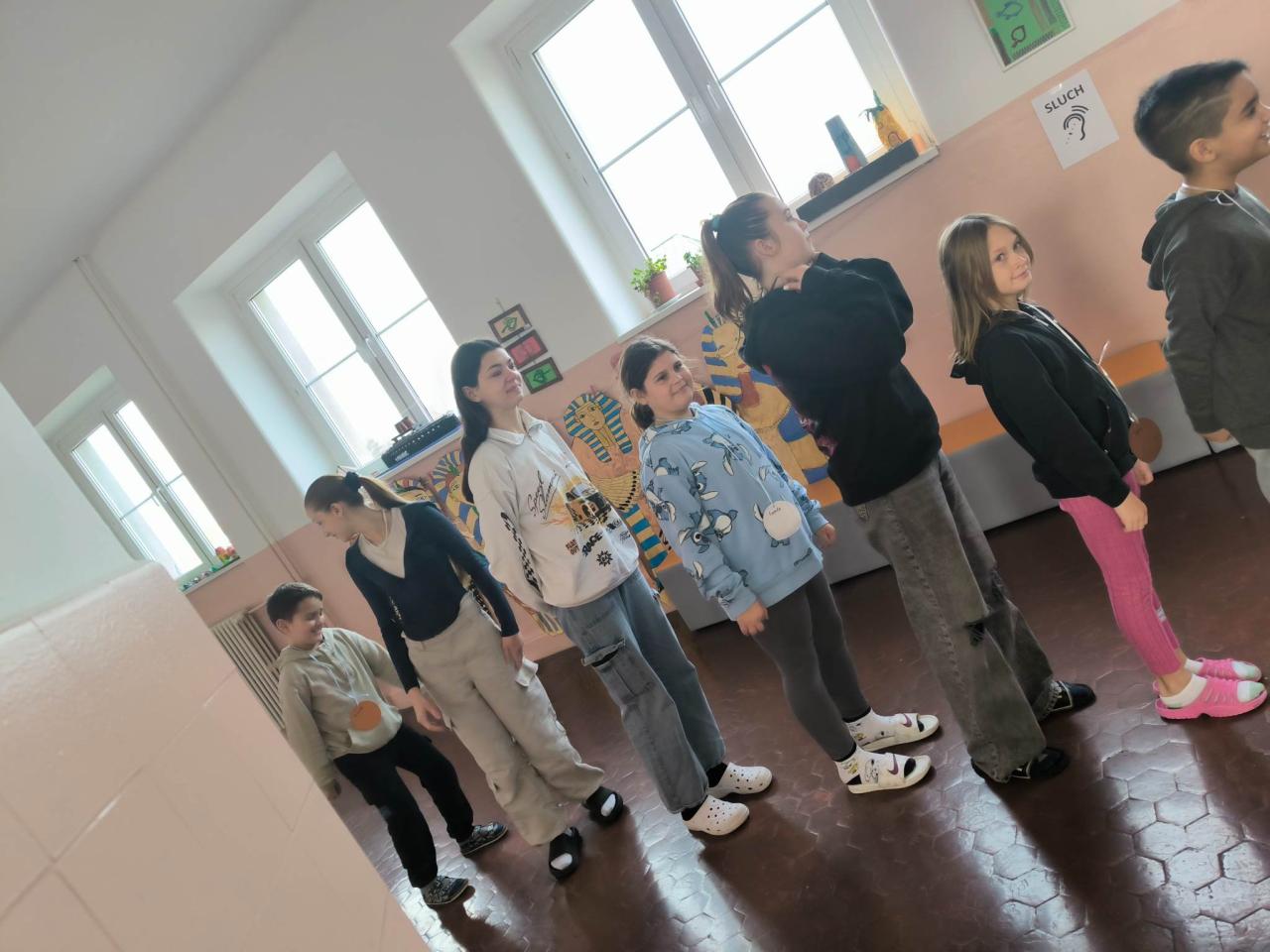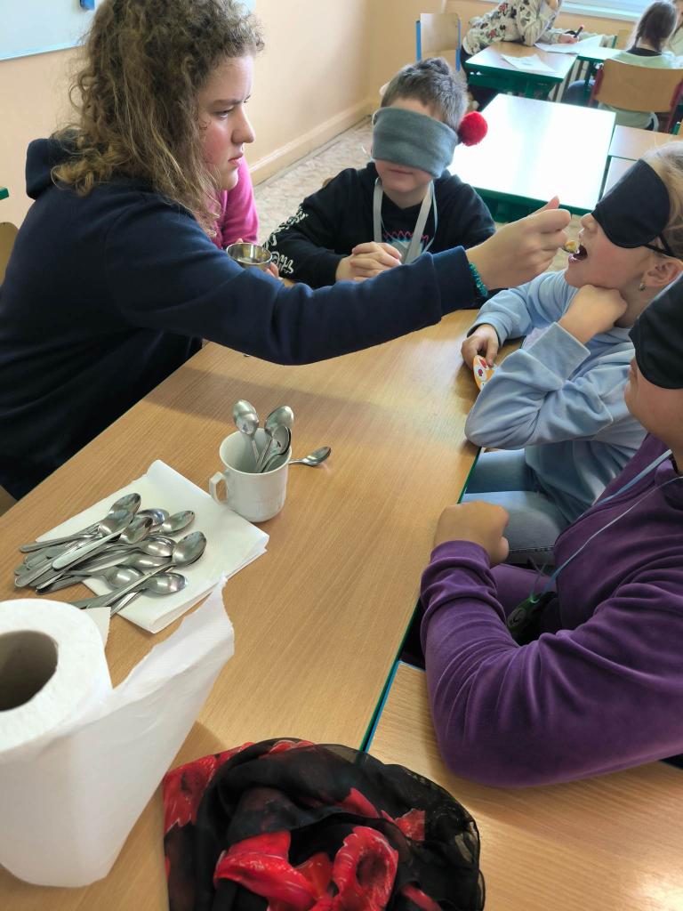 Nevidomí jednotlivě prožívají svět svým vlastním způsobem, využívají k tomu ostatní smysly. A právě v pátek 22. listopadu si žáci naší školy vyzkoušeli, jaké to je být nevidomým. Byl pro ně připraven program, kde si vyzkoušeli, jaké to je chodit "se slepeckou holí", jaké písmo mají nevidomí lidé, nebo například jak namalovat obrázek podle instrukcí poslepu, jak si připravit svačinu či jak nalít vodu bez zraku. Děti postupně procházely jednotlivými stanovišti, kde na ně čekaly hry a aktivity zaměřené na "osahání" prostředí všemi možnými smysly. Na stanovištích sbírali žáci symboly smyslů a lepili si je na své medaile.