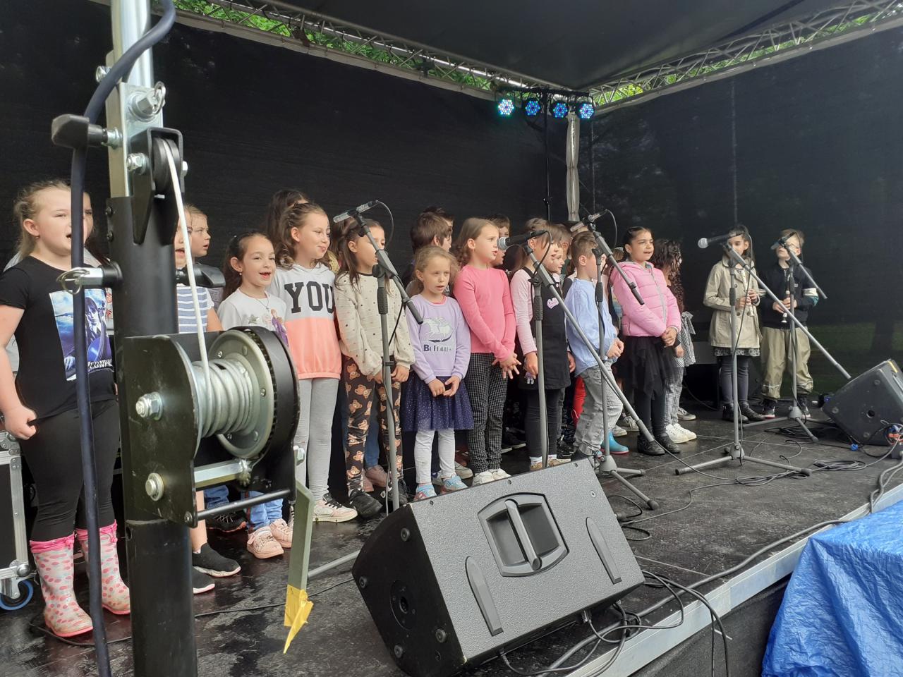 V sobotu 1.6. naši prvňáci i druháci oživili svým zpěvem pouť. Z pódia jsme slyšeli písně Malé kotě, Skřítkové tesaři, Statistiku, Když se zamiluje kůň a další. Děkujeme našim nejmenším za reprezentaci školy, panu T. Pittelovi za hudební doprovod a děkujeme i paní učitelkám: Vašíčkové, Dvořákové, Havrdové i p. asistentce Machačkové za nácvik.