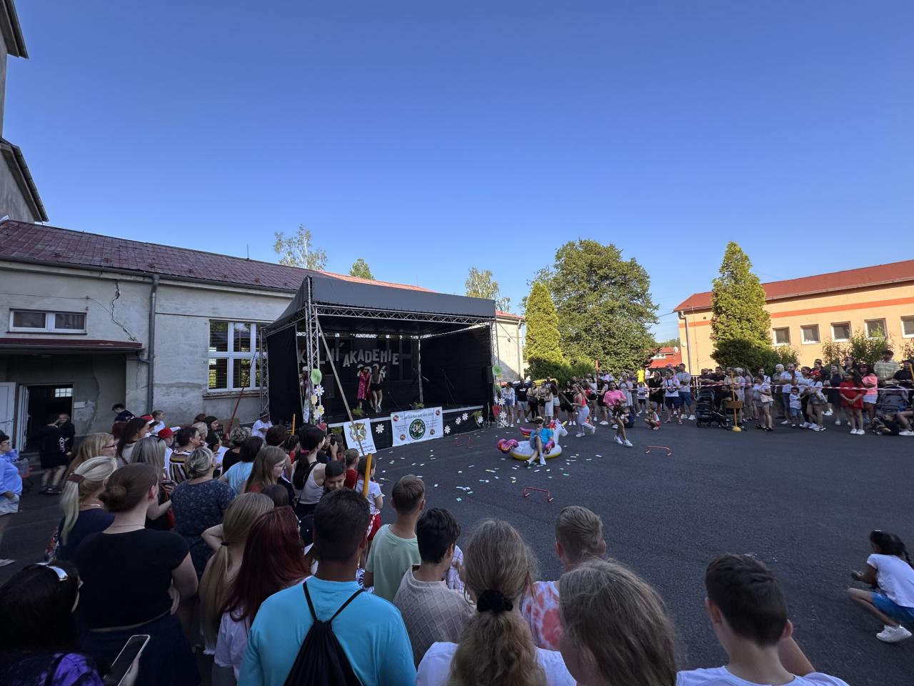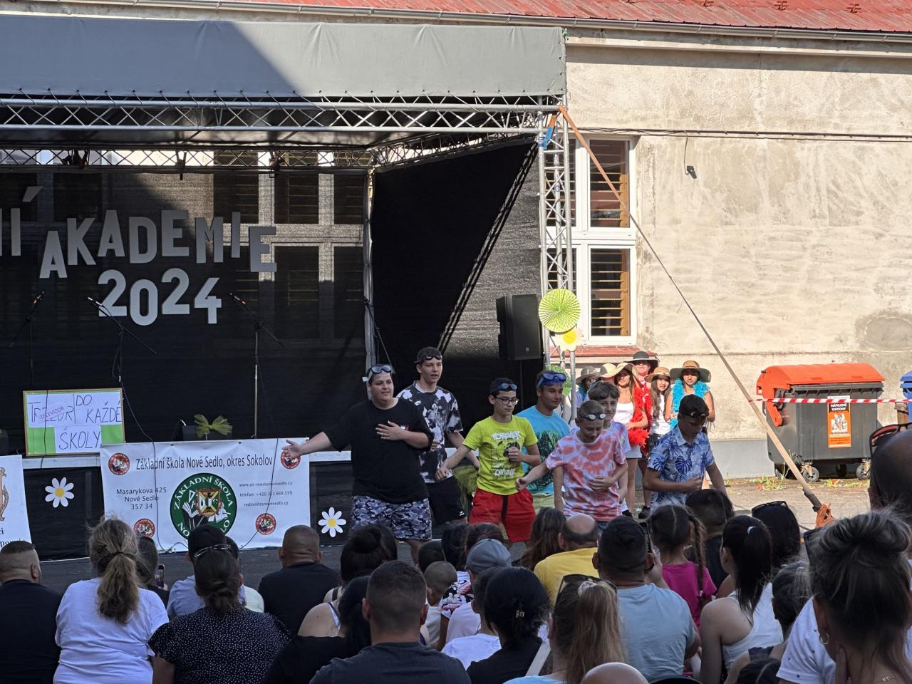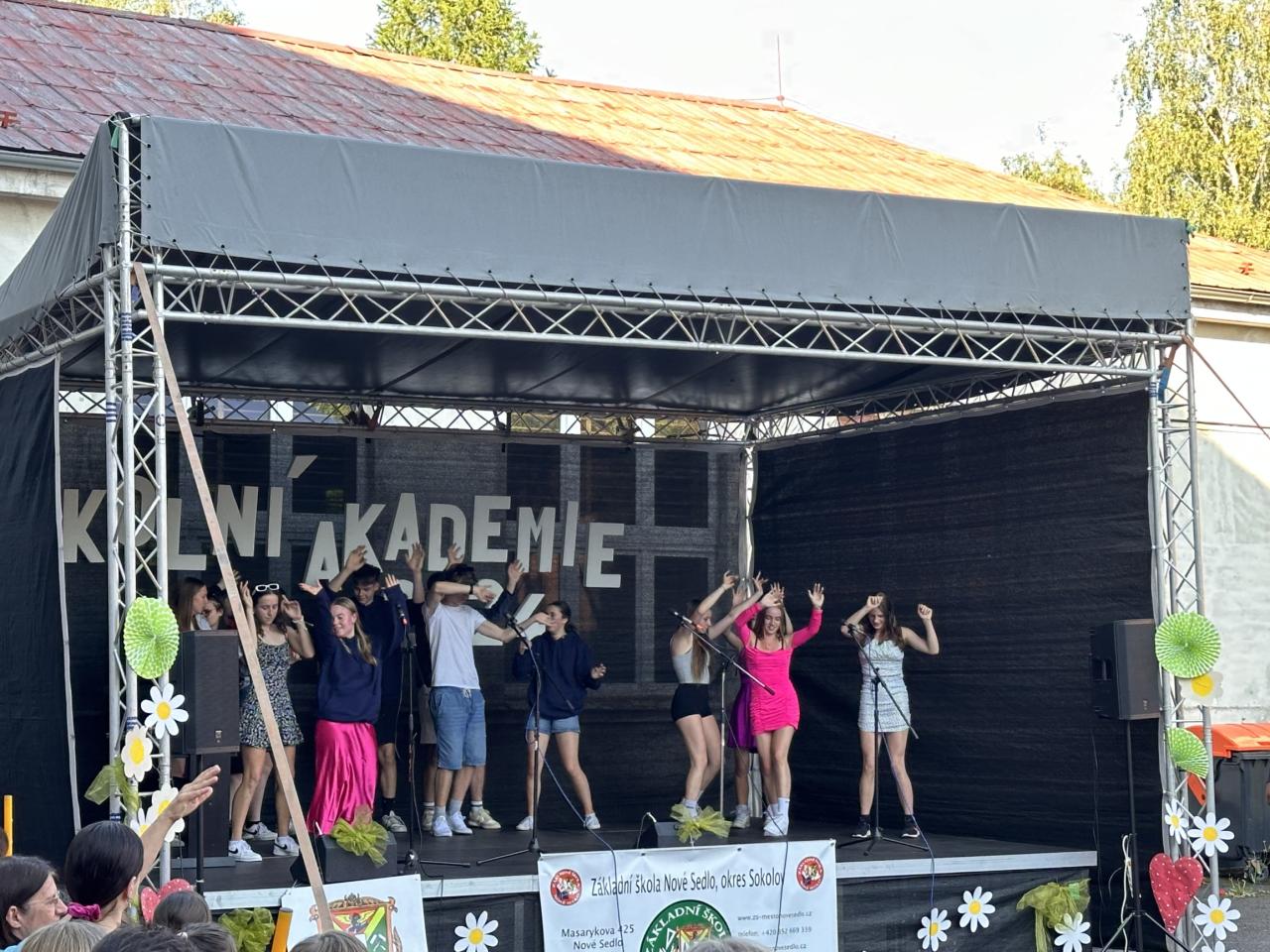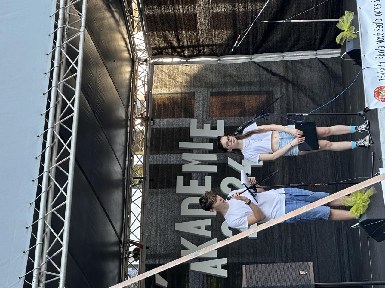 Téma naší akademie bylo jasné celý školní rok a to 90. výročí založení české školy v Novém Sedle. Zdatní a zábavní moderátoři Filip Slavíček, Štěpánka Ořechovská a Klára Fuchsová provedli diváky dlouholetou historií školy v Novém Sedle včetně dobových ukázek. Všechna vystoupení byla nápaditá, vtipná a šikovně zasazená do historické linky naší školy. Atmosféra akce měla obrovský náboj, vzduchem létaly hromady bankovek, na pódiu se střídal zpěv s hudbou a tancem, ba dokonce akvabely zaplavaly fantastickou sestavu, a to ve škole nemáme bazén. Vystoupení obohatily i paní učitelky z prvního stupně poměrně neznámou verzí pohádky o Popelce, která měla samozřejmě velký úspěch. Velké finále ovšem opanoval devátý ročník svým neotřelým uměleckým pásmem a závěrečnou korunovací učitelů na rozloučenou.