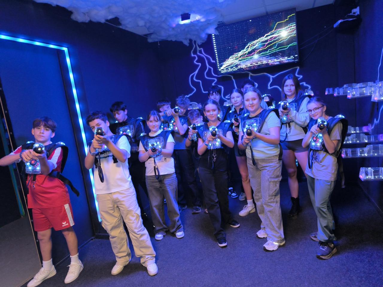 Dne 15. prosince 2025 jsme navštívili Fantasy Laser Game v Karlových Varech, kde jsme utužovali vzájemné vztahy, rozvíjeli strategii a spojovali zábavu s pohybem v rámci dvou her, první hru si s námi zahrála i paní učitelka, druhou hru jsme pak hráli "barvičky". Poté jsme se šli do OC Varyáda, kde jsme se setkali s osmáky. Najedli jsme se, nakoupili dárky a hlavně jsme si to užili. Potom jsme si našlápli zpět na vlak a jeli domů. Všichni jsme byli vyčerpaní, ale šťastní, plní radosti a nezapomenutelných zážitků.