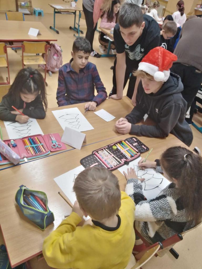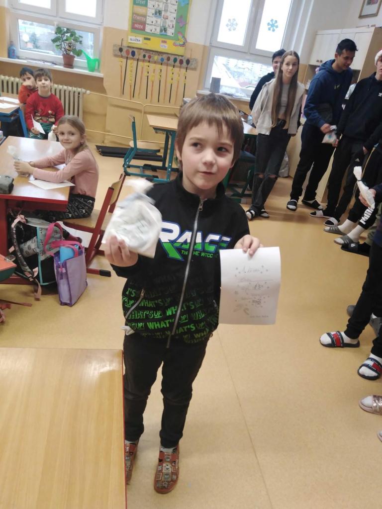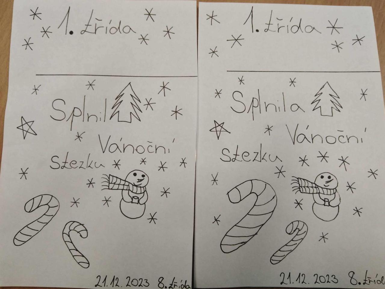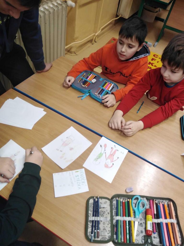 Takže…….hráli vánoční pexeso, hledali šupiny, které potom lepili kaprovi na tělo, házeli dárky do vánoční bedny, zdobili stromeček, malovali přání, odpovídali na pohádkové otázky, malovali Ježíška, vyráběli sněhuláky…no prostě, měli se vánočně. Každý samozřejmě Vánoční stezku splnil, takže obdržel diplom a balíček s překvapením.