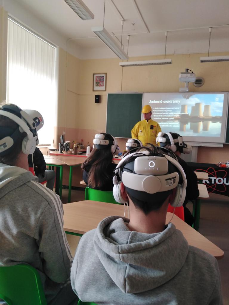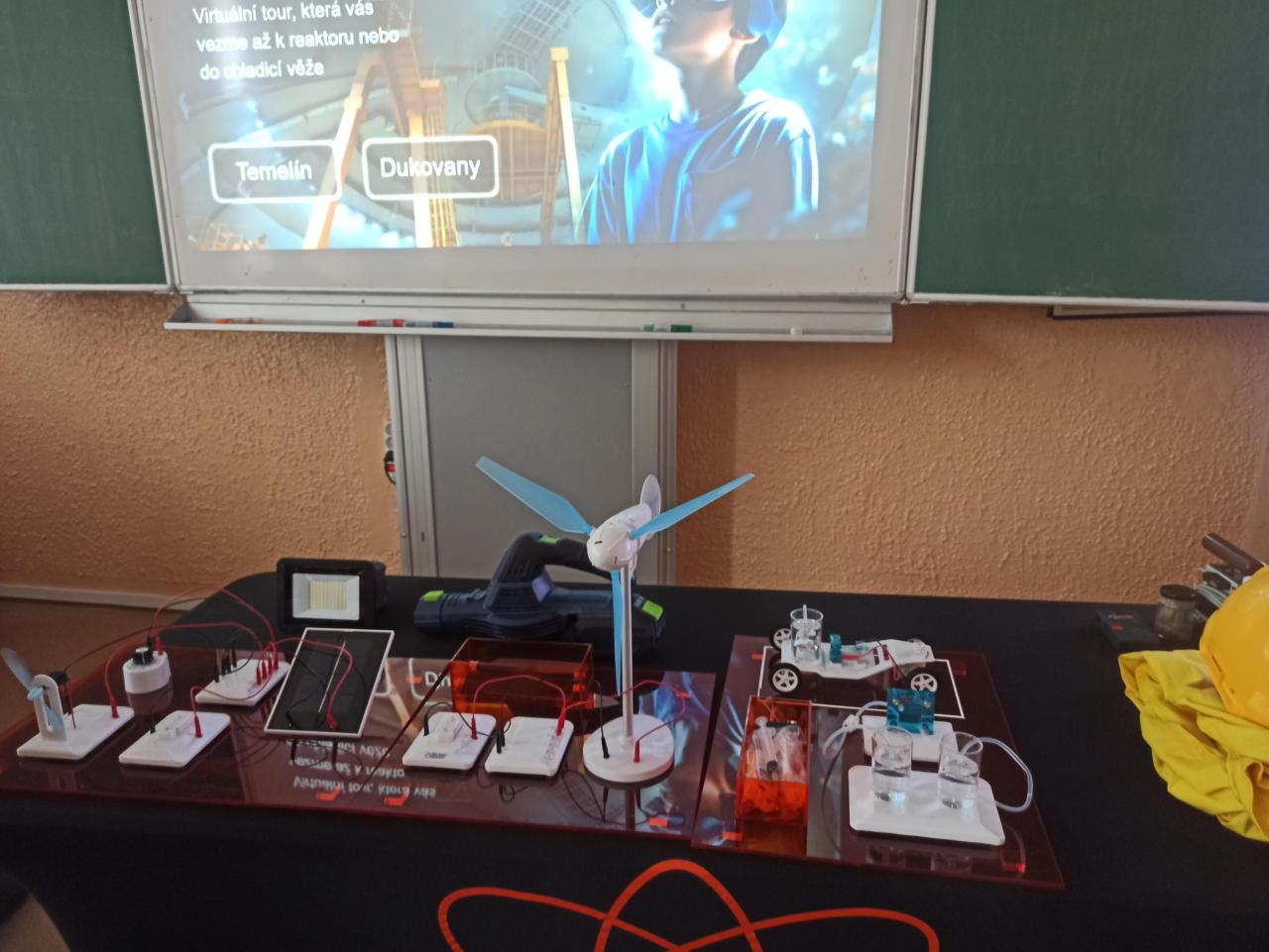 Dále viděli fyzikální pokusy na obnovitelnou energii. Nejzajímavější jistě byla i prohlídka jaderné elektrárny ve virtuální realitě. Během chvilky se žáci ocitli uvnitř jaderné elektrárny – u reaktoru, na velíně, ale i vysoko nad chladící věží.
