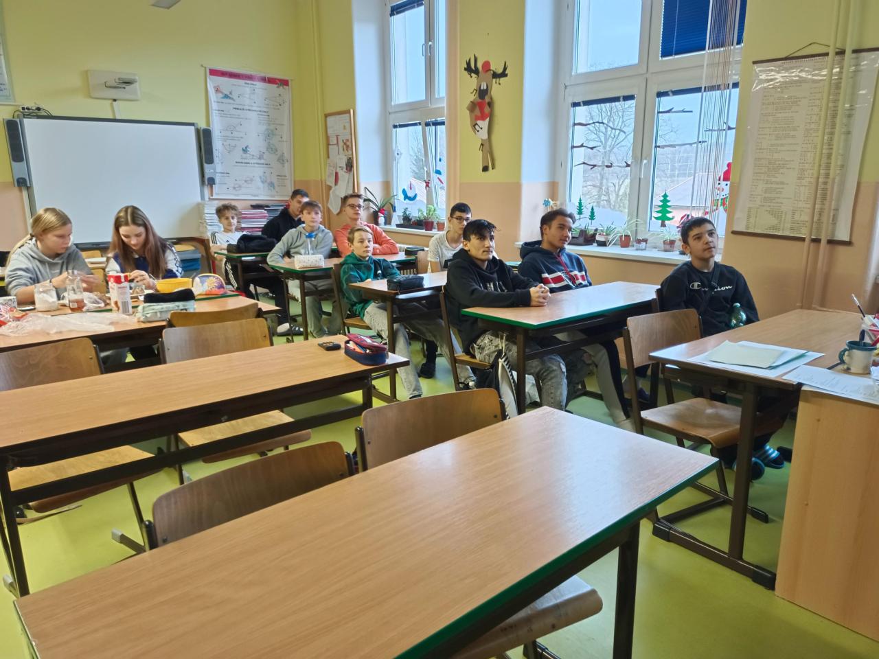 Ve čtvrtek se dívky z 8.A vrhly na výrobu nepečného cukroví - vosích hnízd. A nutno podotknout, že práce jim šla od ruky a výsledk byl mňamózní.