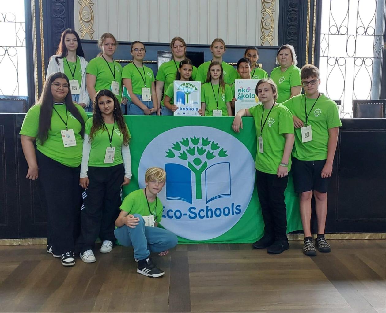 Dne 13. 6. se náš Ekotým vydal na slavnostní předávání zelené vlajky a certifikátu o splnění zelené cesty.