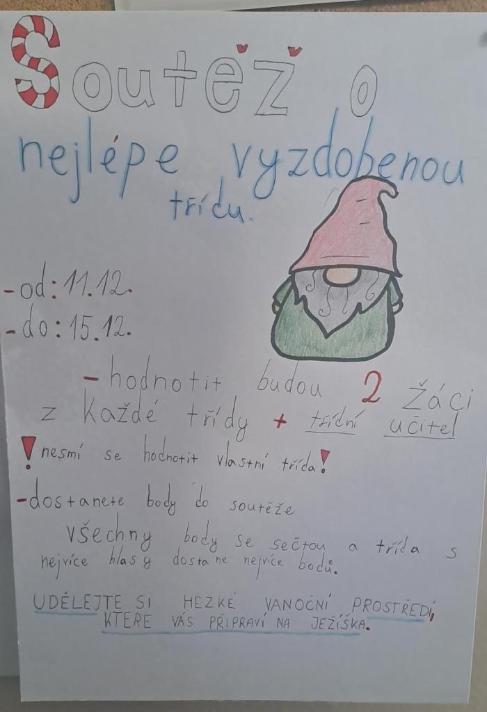 A v pátek bodově ohodnotí výzdobu jednotlivých tříd všichni třídní učitelé + 2 zvolení zástupci z každé třídy.