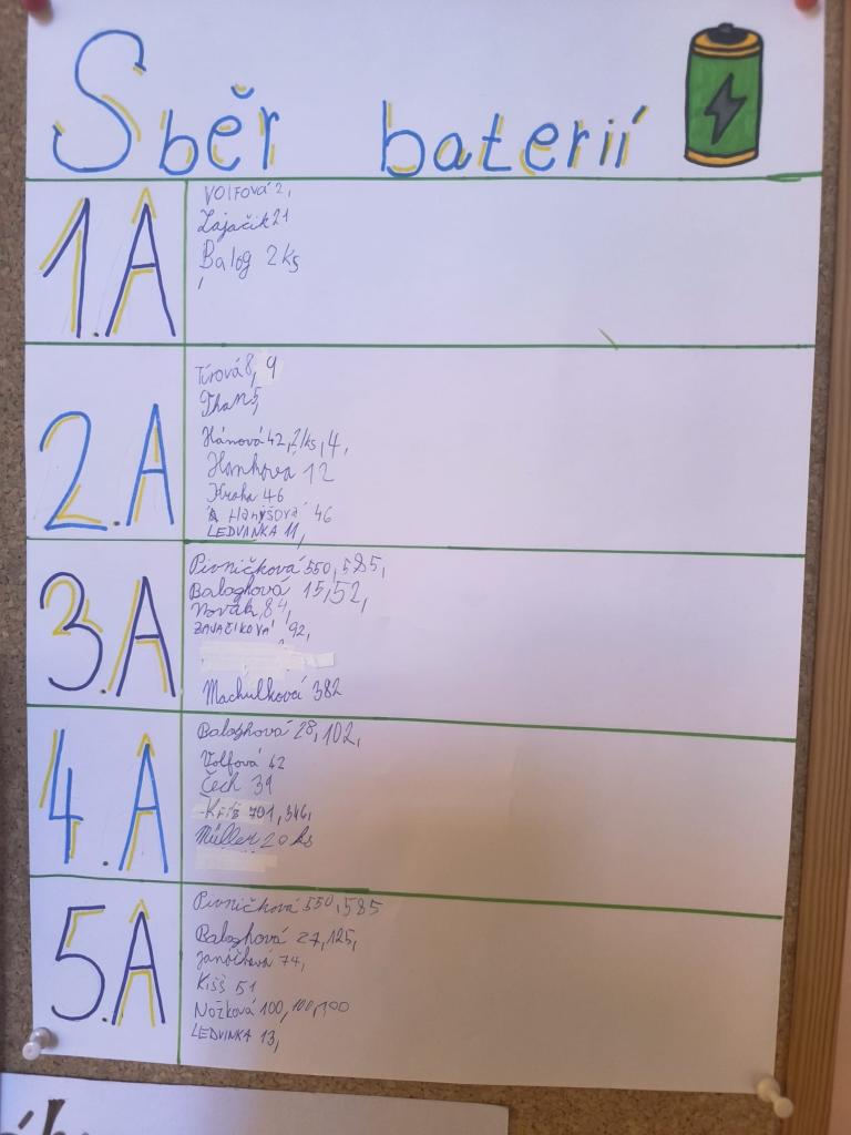 Děkujeme všem žákům, kteří se do sběru zapojili a přinesli použité baterie. Společně jsme tak přispěli k ochraně životního prostředí a pomohli zajistit, aby baterie neskončily v běžném odpadu, kde by mohly škodit přírodě.