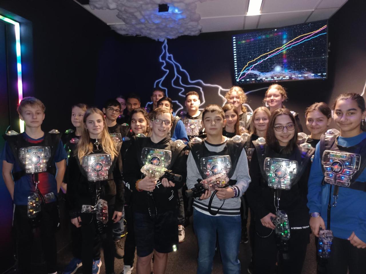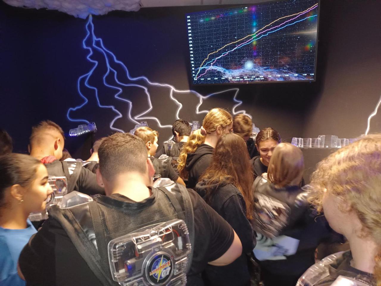 Ve hře jsme byli rozděleni do týmů podle barev. Měli jsme na sobě svítící vesty, ty na nás mluvily, a samozřejmě pistole.