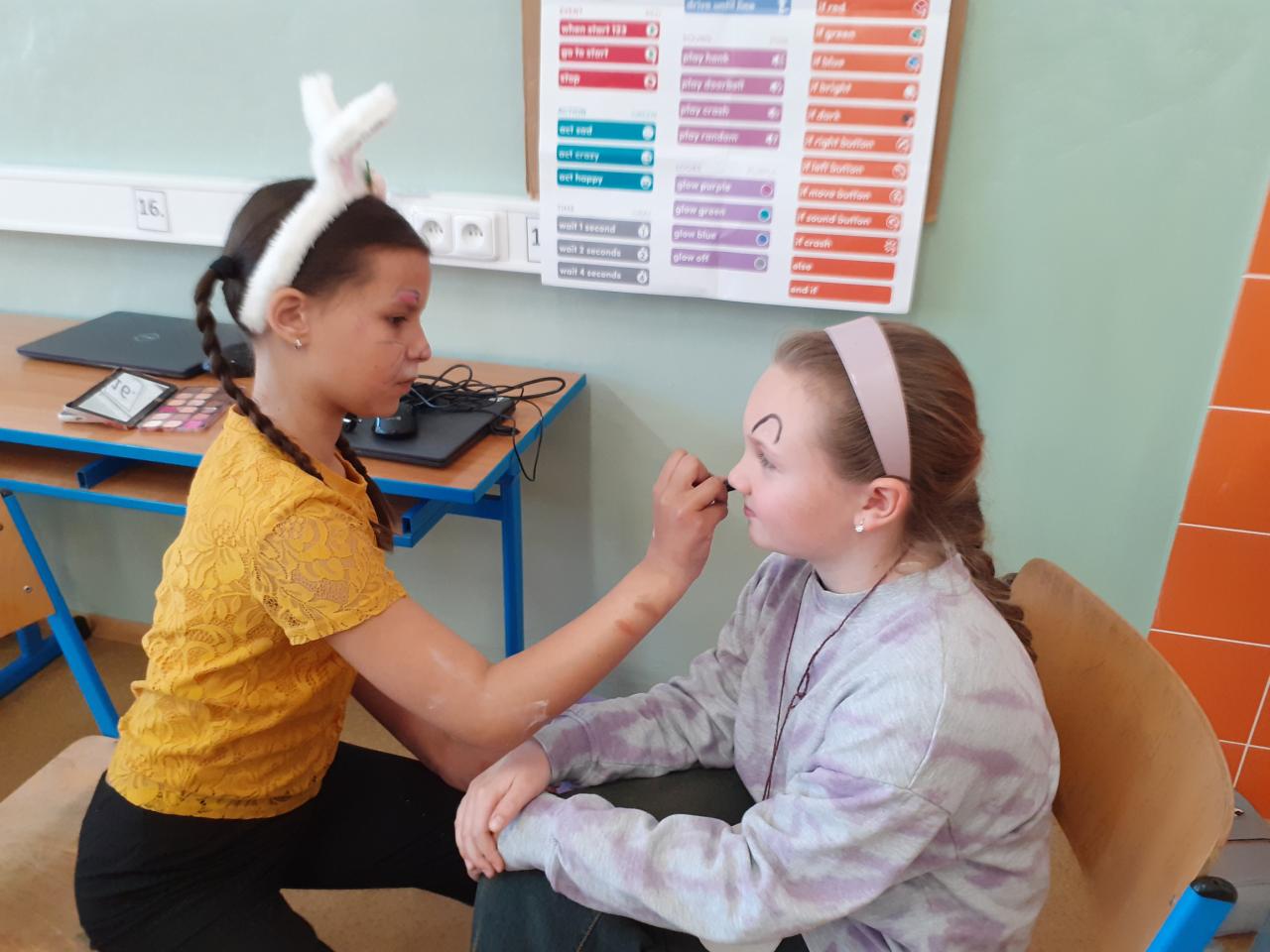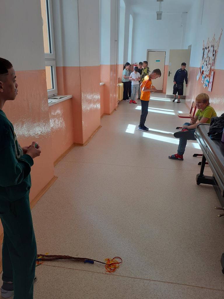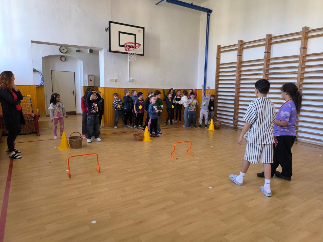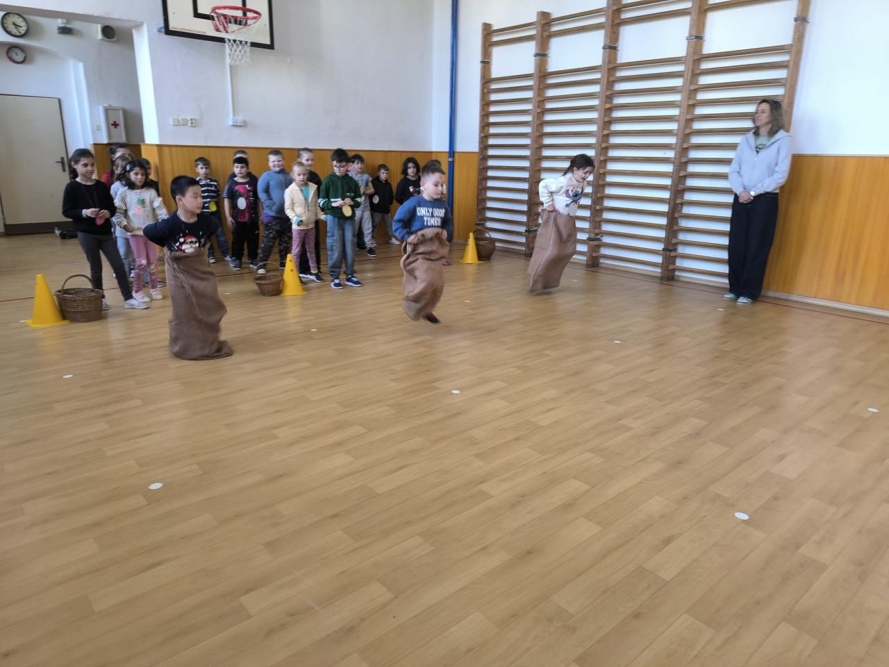 "Jdeme do toho,"řekli si páťáci a už vyráběli medaile, vymýšleli soutěžní disciplíny. A tak se ve středu 16.4. házelo vlaštovkami, nosilo vajíčko na lžíci, překonávaly se bažiny, shazovaly kuželky, malovalo na obličej, obtiskávaly ruce a nakonec se soutěžilo v tělocvičně.....Při procházce pak žáci objevovali názvy velikonočních dnů a plnili úkoly.