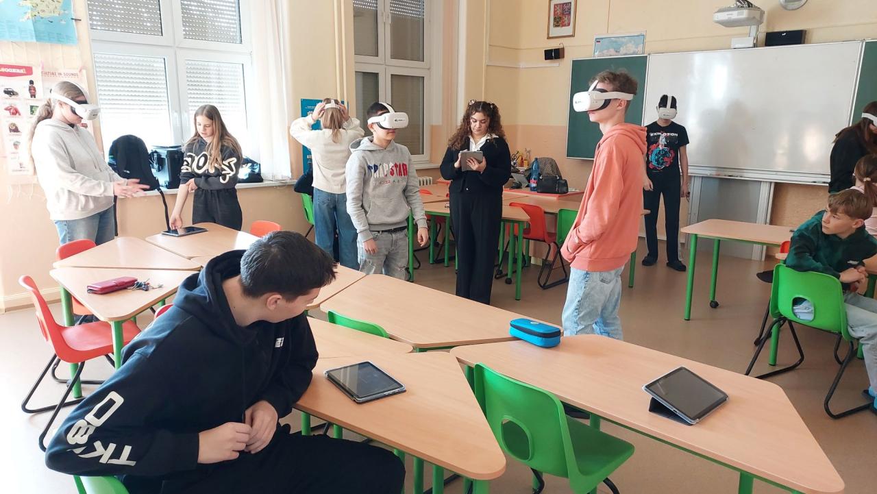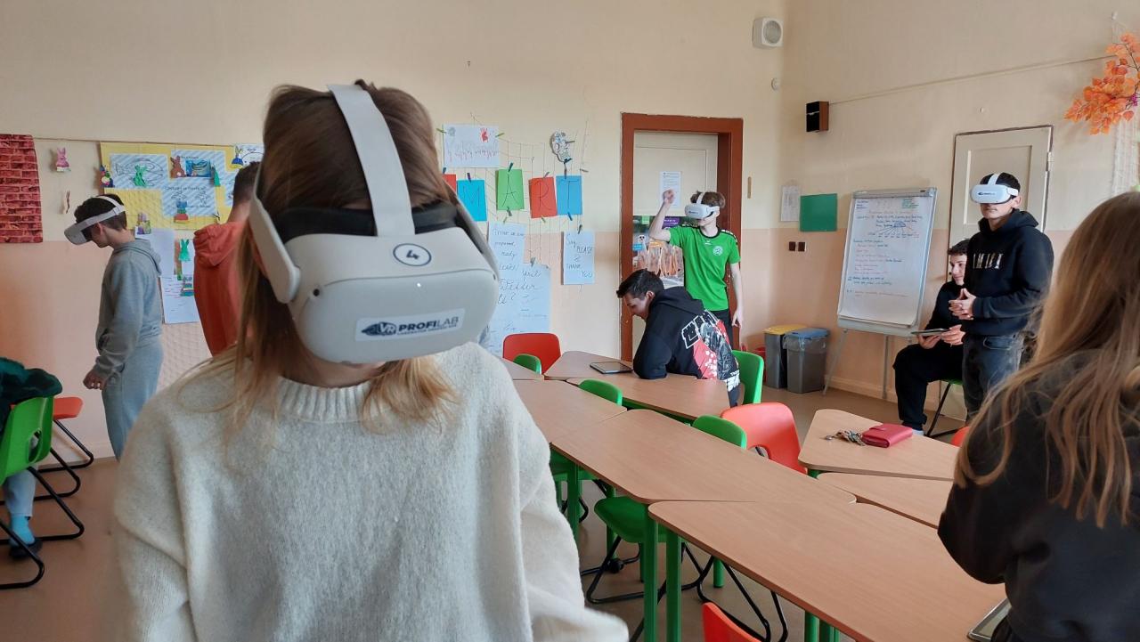 Díky těmto brýlím zažili v pondělí 10. 3. naši osmáci den na pracovištích v Karlovarském kraji a interaktivní formou získali důležité informace, které jim mohou pomoci lépe se rozhodnout. Virtuální simulace jim umožnila nahlédnout do různých profesí – od kuchaře, maséra a skláře až po projektového inženýra, chemického technika, PLC programátora, IT specialistu, průmyslového inženýra či zdravotníka. Díky těmto moderním technologiím se mladí lidé mohli podívat přímo do světa práce a lépe pochopit, co jednotlivé role obnáší. Součástí projektu je také vyplnění profesního online dotazníku, který může každého jedince pomoci nasměrovat k užšímu výběru povolání dle svých schopností a předpokladů. Z výsledků návrhů povolání, které žákům vyšly však bylo patrno, že mnozí stále tápou a mají před sebou ještě dlouhou cestu hledání, čím by jednou v životě chtěli být, která práce bude pro ně ta pravá.