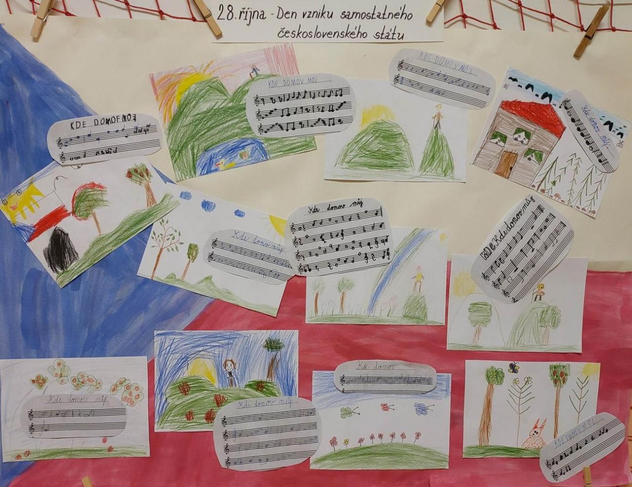 V minulém a tomto týdnu proběhl ve druhé třídě miniprojekt "Kde se tu vzal státní svátek Den vzniku samostatného československého státu". Žáci si společně s paní asistentkou a se svými vyučujícími předmětů hudební výchova, český jazyk a člověk a jeho svět přiblížili základní poznatky z historie, objasnili si některé pojmy a upevnili si své dosavadní i nové znalosti o naší republice. Byly to hodiny poučné - státní symboly, hlavní město i umístění naší republiky na mapě Evropy si mohl ukázat a poznat každý, byly to hodiny veselé - zhlédli jsme příběh o vzniku naší hymny, kterou jsme se zároveň učili zpívat, nakreslit a zkoušeli jsme si ji také zapsat do not. Došlo i na využití krásných školních pomůcek jako je Albi tužka, puzzle a mnoho obrázkových materiálů. Velmi nás to bavilo a už teď se těšíme na další podobné akce. Již brzy nás čeká Den stromů......o těch se také momentálně učíme!
