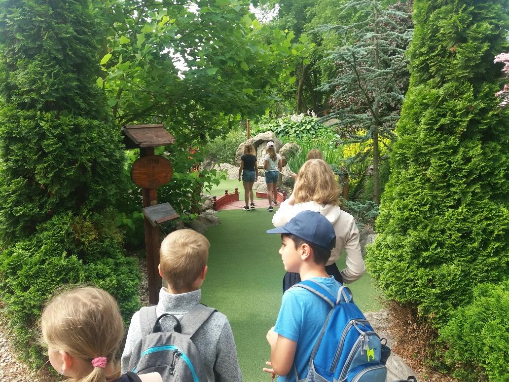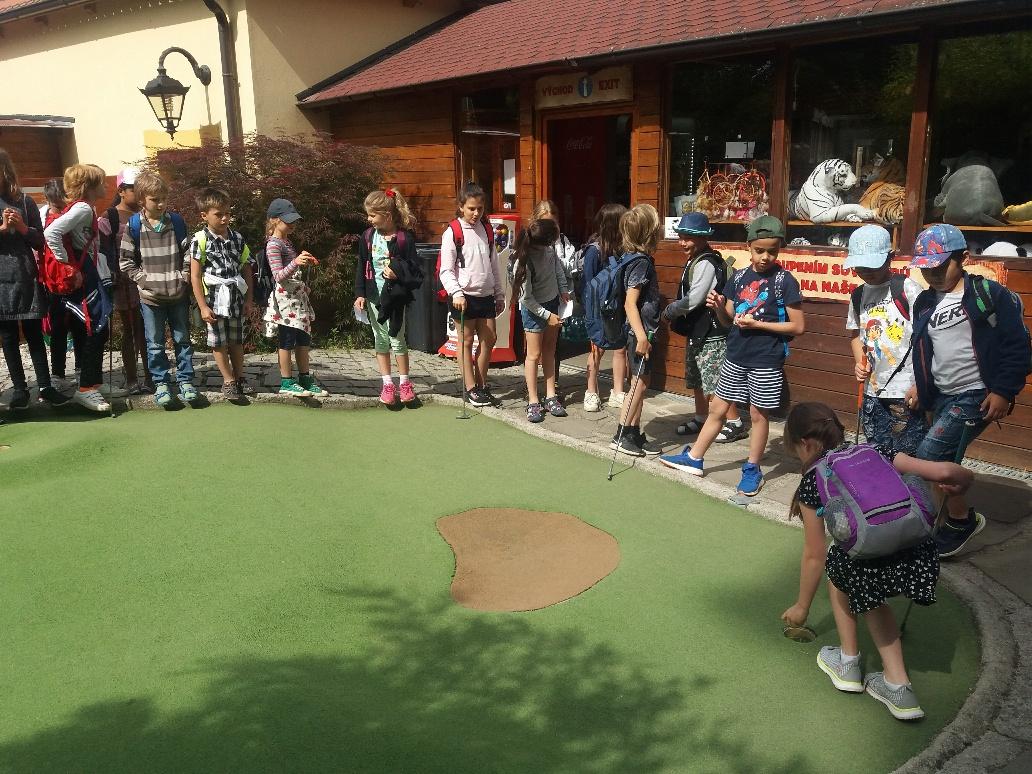 Natěšený autobus dětí z 2.A,3.A, i 4.A vyrazil na výlet do minizoo s minigolfem. Při hraní golfu jsme ani nevnímali zvířata kolem sebe a hráli a hráli. Po zážitcích z golfu jsme začali objevovat zvířata a indiány, pyramidu, sopku, Transylvánii, Řecko.....putovali světem. Byl to moc hezký a pohodový den.