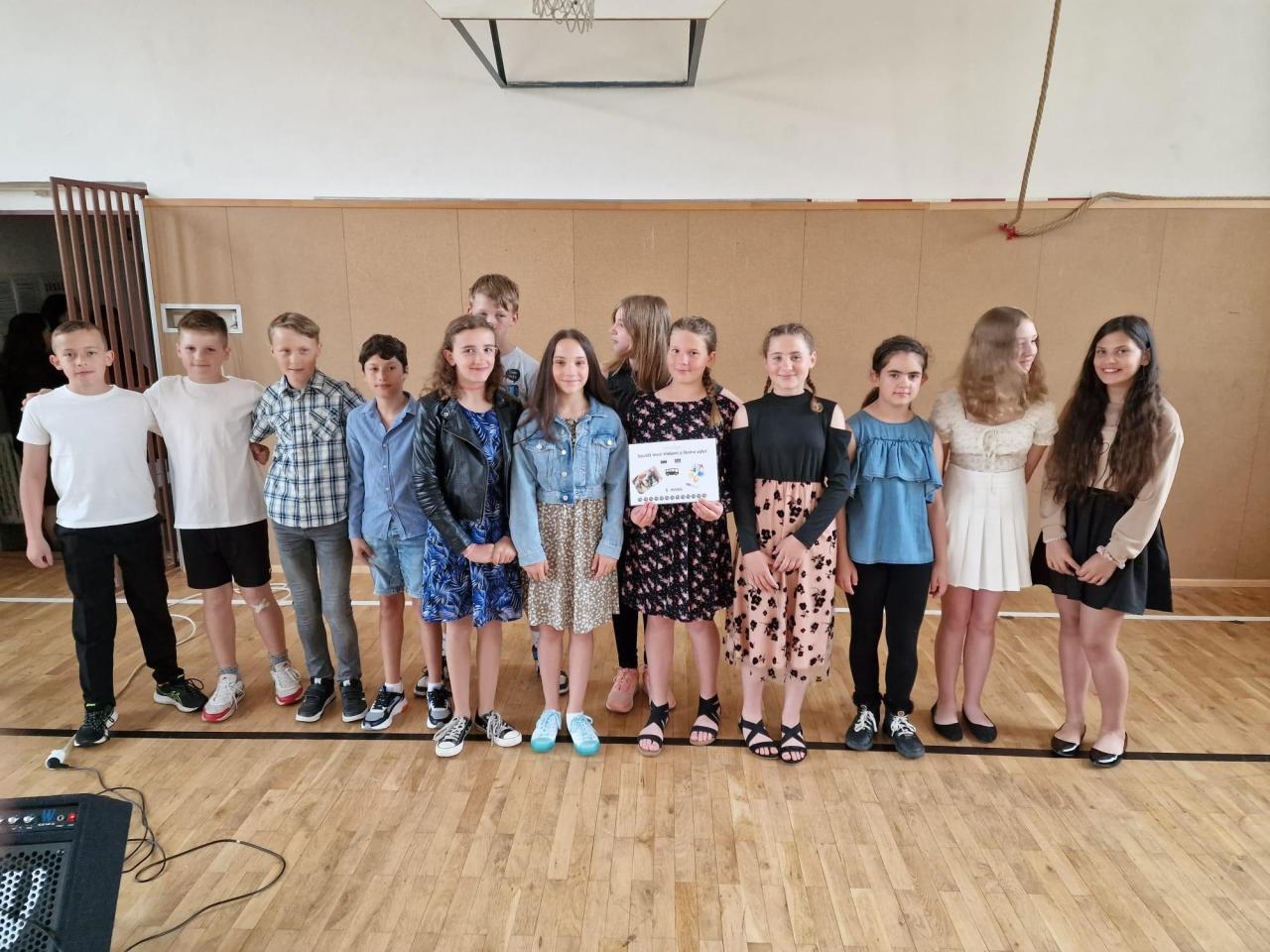 Dnes byl vyhodnocen druhý ročník Soutěže o školní výlet, která probíhá mezi třídami po celý školní rok. Hodnotil se úspěch v soutěžích, zapomínání klíčů od skříněk, reprezentace školy, úklid ve třídách…u starších i prospěch v hlavních předmětech.