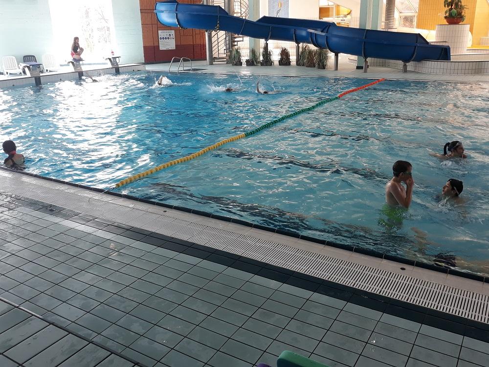 Plavání nás baví. Přesunuli jsme se do druhé poloviny výcviku, pravidelně trénujeme ,ale máme i chvilku pro hraní a užívání, skákání, lovení puků.